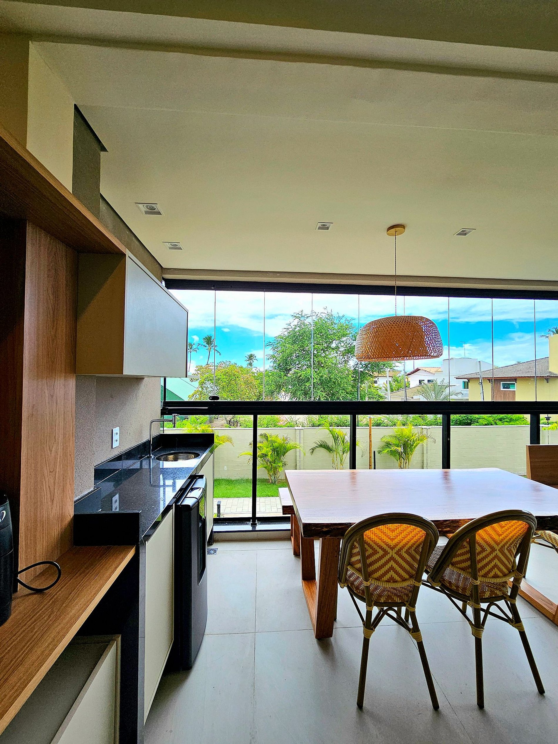 Temos ar condicionado em todos os quartos e também na sala, acomodamos até 6 pessoas (Temos uma excelente cama de casal na suíte com uma auxiliar de solteiro e no quarto social 2 camas de solteiro + auxiliar de solteiro), temos cozinha completa e equipada, além de uma estrutura completa que o nosso condomínio proporciona, incluindo mesas e cadeiras em um deck beira-mar.
