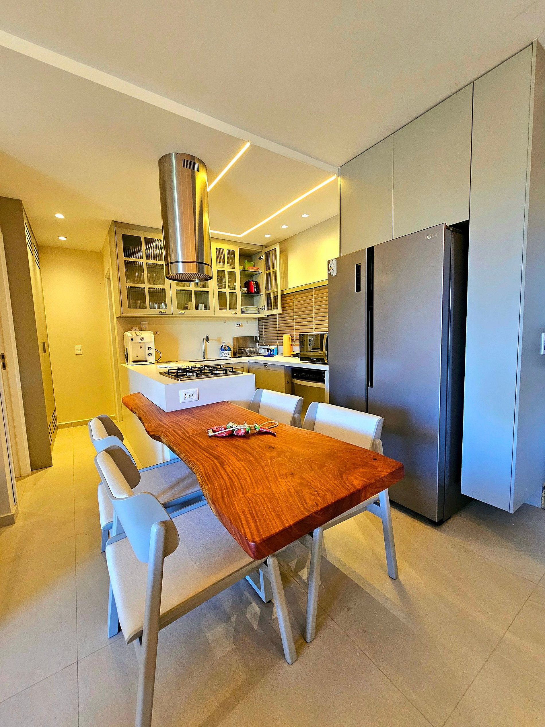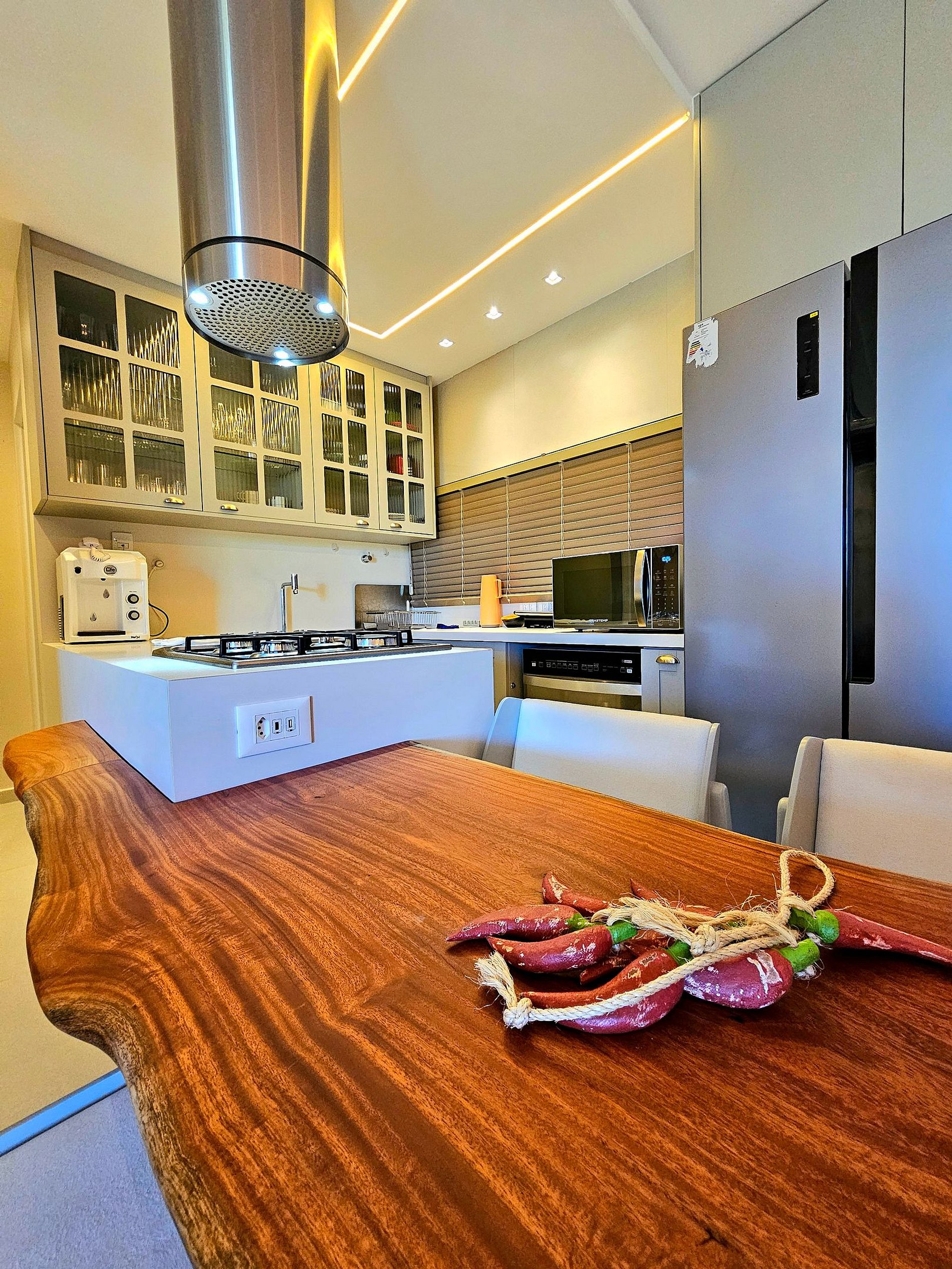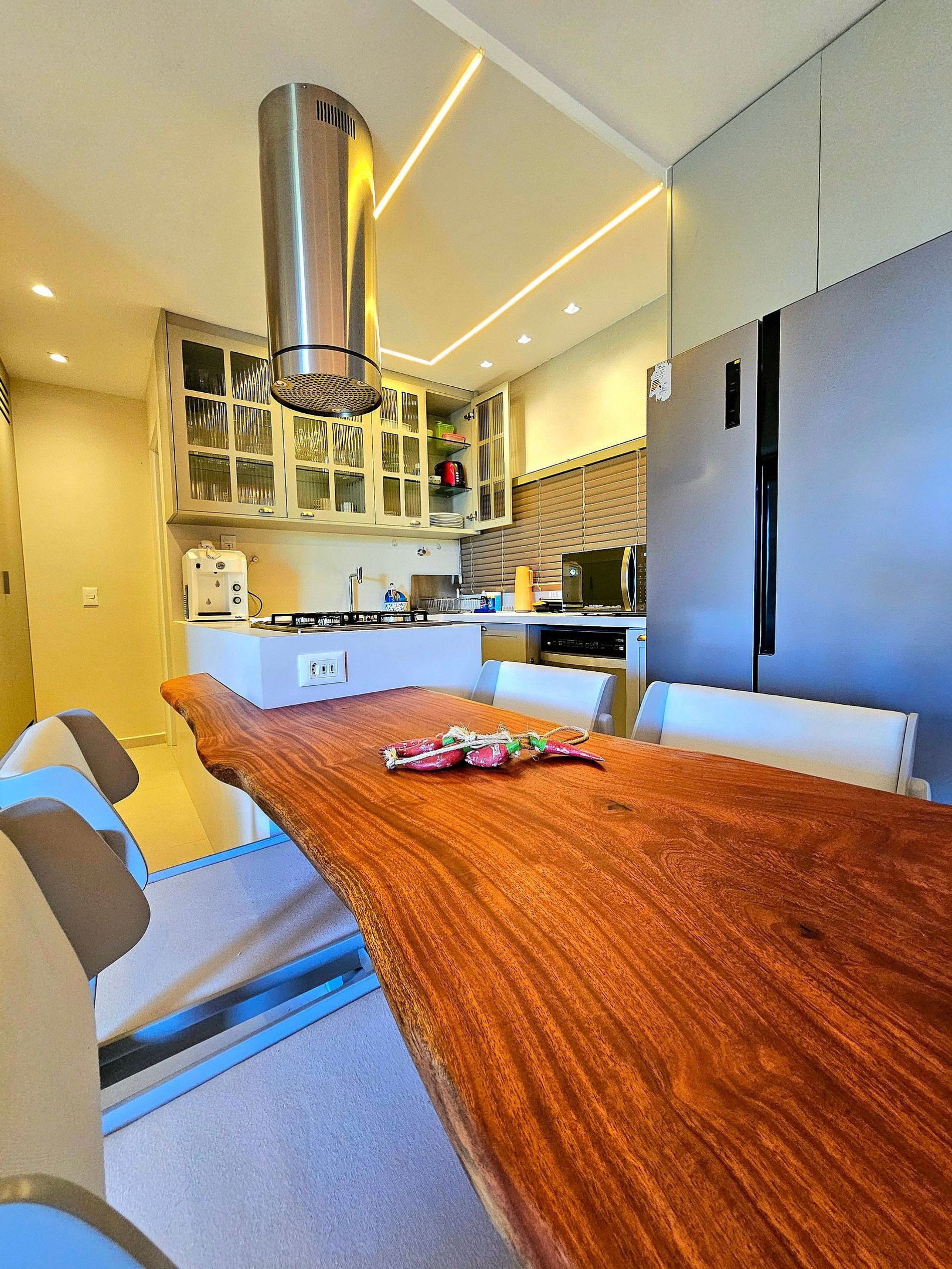 O Apartamento foi montado nos mínimos detalhes com muito luxo e itens de qualidade, iluminação moderna, completa em eletrodomésticos (Geladeira, Fogão, Microondas, Liquidificador, Airfryer, Cafeteira, Sanduicheira, etc..), Possuímos pratos, taças, utensílios de excelente qualidade, todo novo.