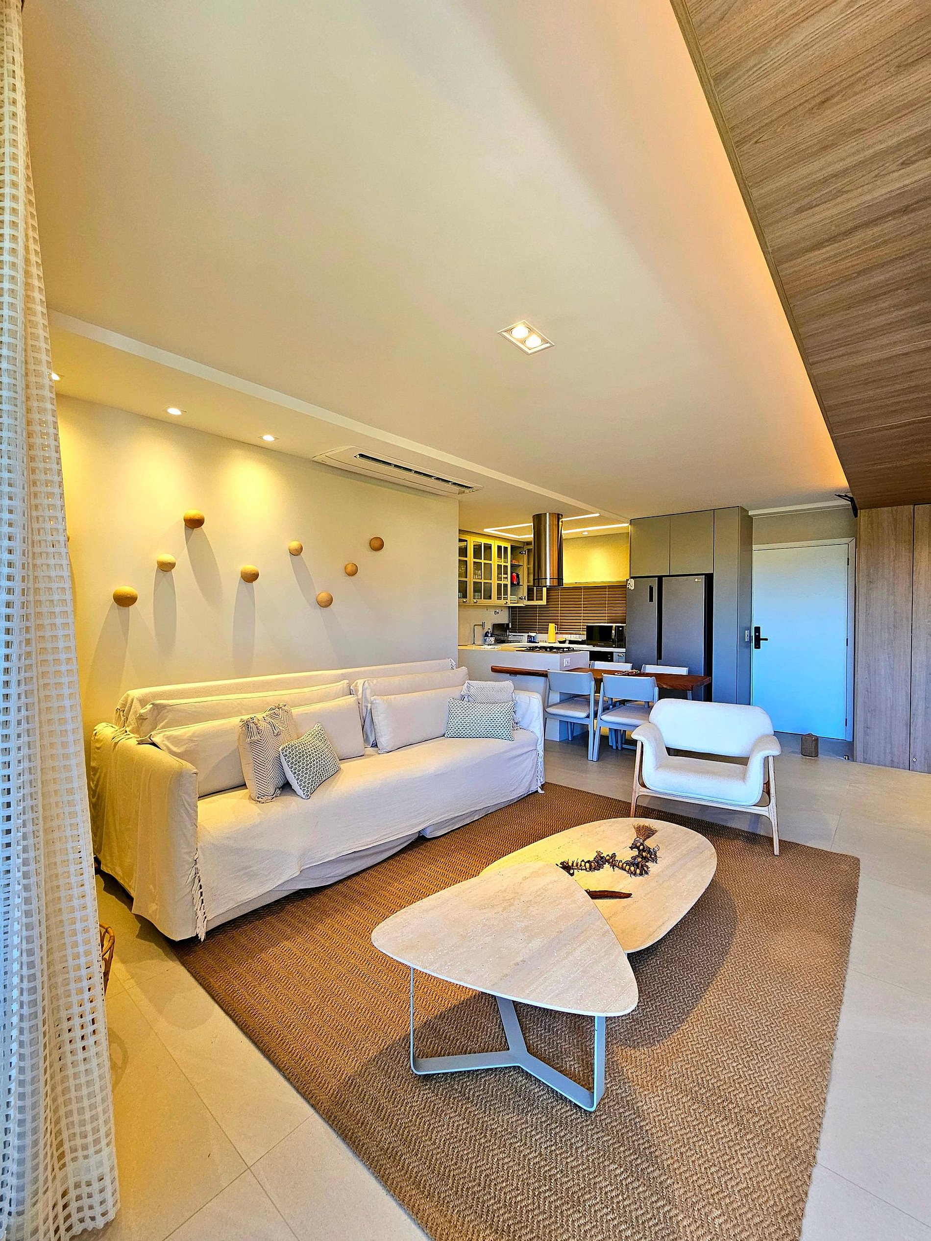 temos cozinha completa e equipada, além de uma estrutura completa que o nosso condomínio proporciona, incluindo mesas e cadeiras em um deck beira-mar, Beach Club com restaurante (Custo a parte), hidro na piscina do condomínio que fica à beira-mar, e muito mais.