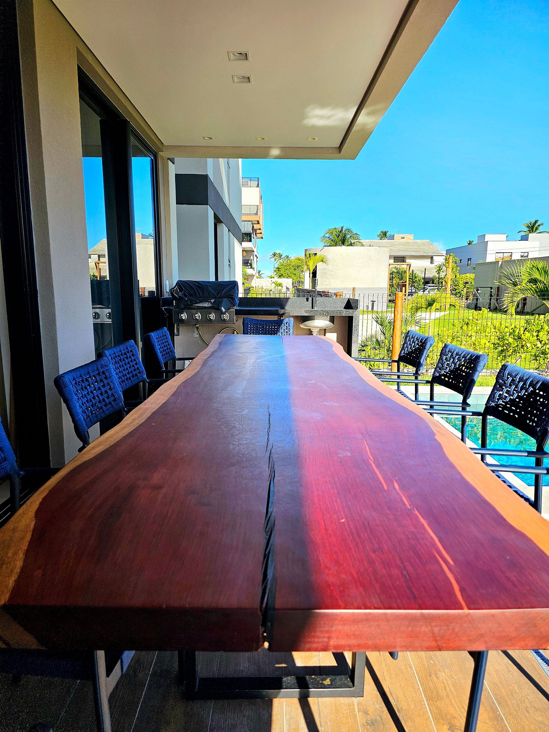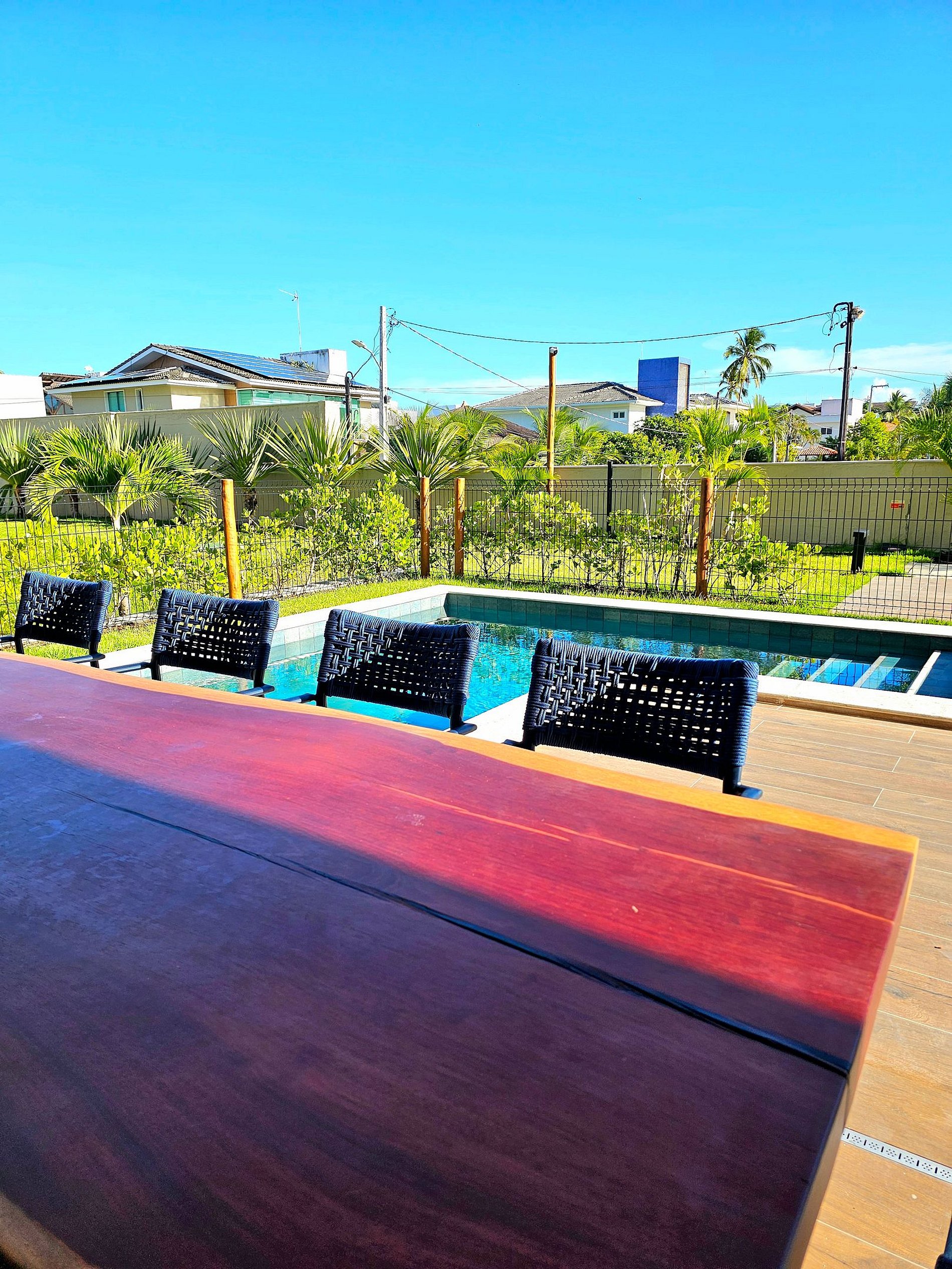 Em nossa área externa temos uma bancada gourmet com churrasqueira a Gás, mesa grande e cadeiras para todos e também um lavabo para maior comodidade dos hóspedes que estão utilizando nossas piscinas.