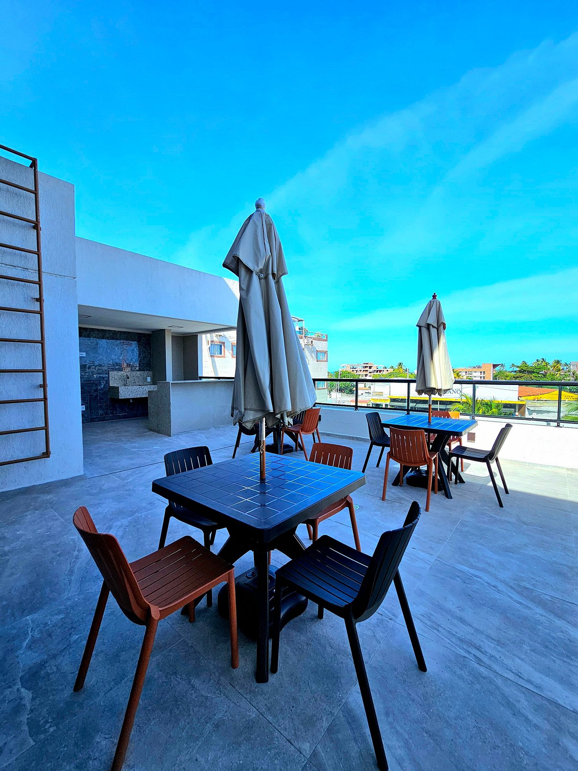 O empreendimento possui uma linda área gourmet no rooftop e uma incrível piscina de borda infinita para tornar sua experiência de conhecer Porto de Galinhas ainda mais agradável, possuímos 5 vagas de estacionamento rotativas e estamos localizados em uma rua que é permitido o estacionamento.