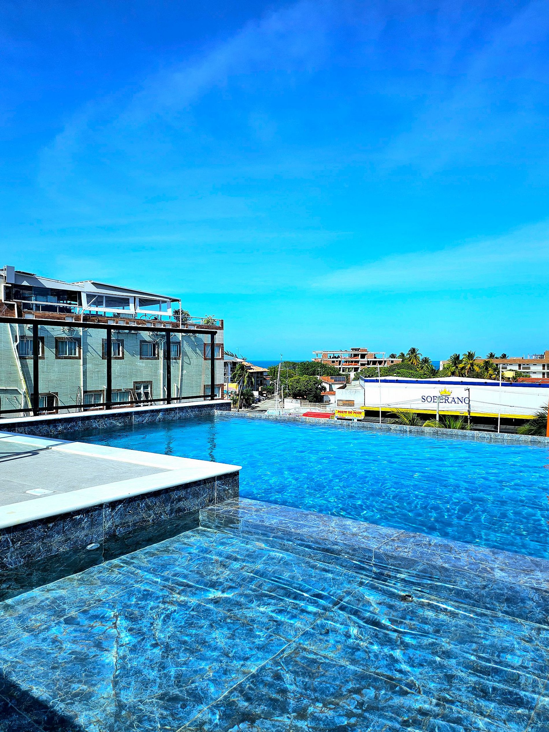 O empreendimento possui uma linda área gourmet no rooftop e uma incrível piscina de borda infinita para tornar sua experiência de conhecer Porto de Galinhas ainda mais agradável, possuímos 5 vagas de estacionamento rotativas e estamos localizados em uma rua que é permitido o estacionamento.