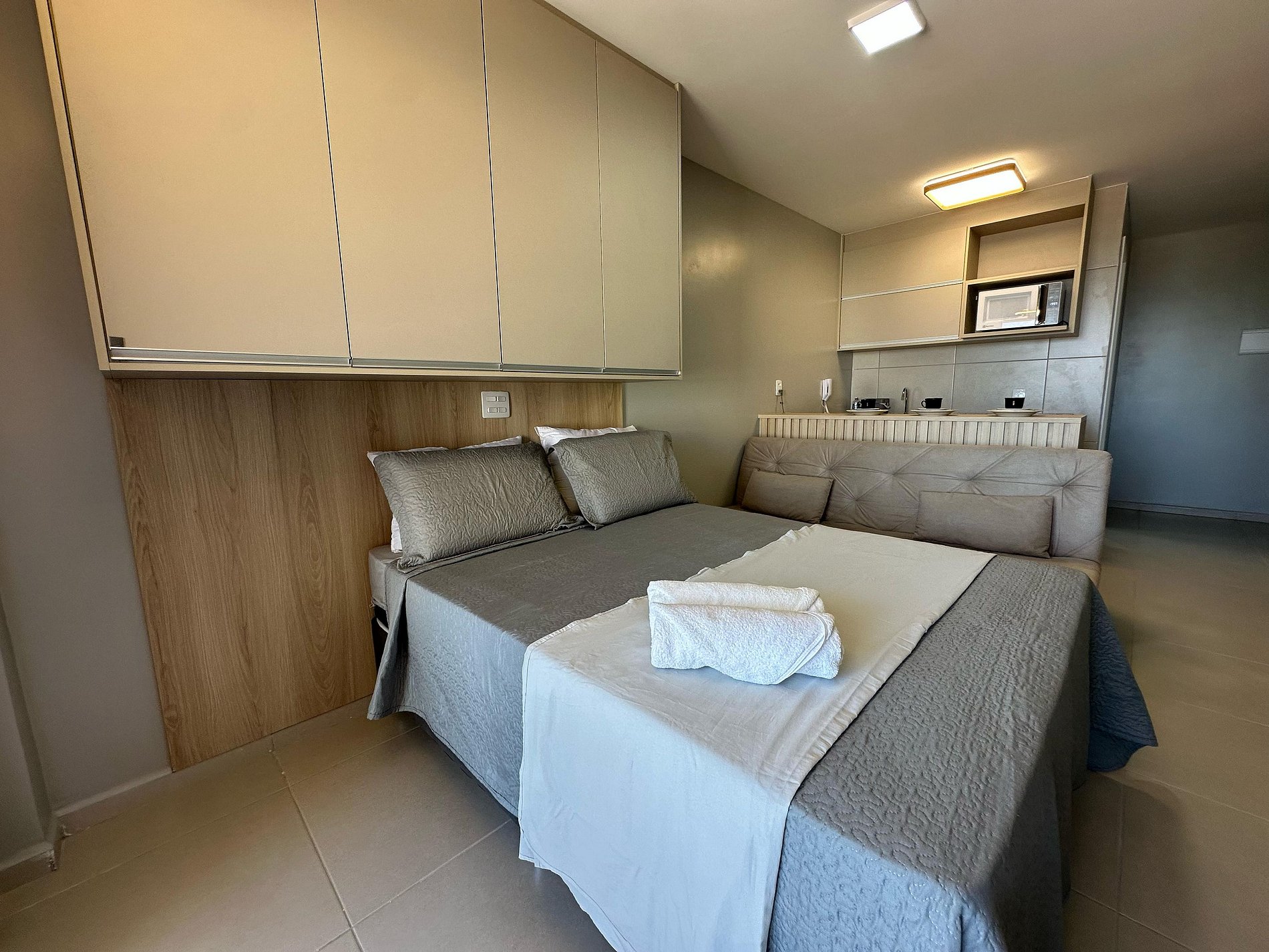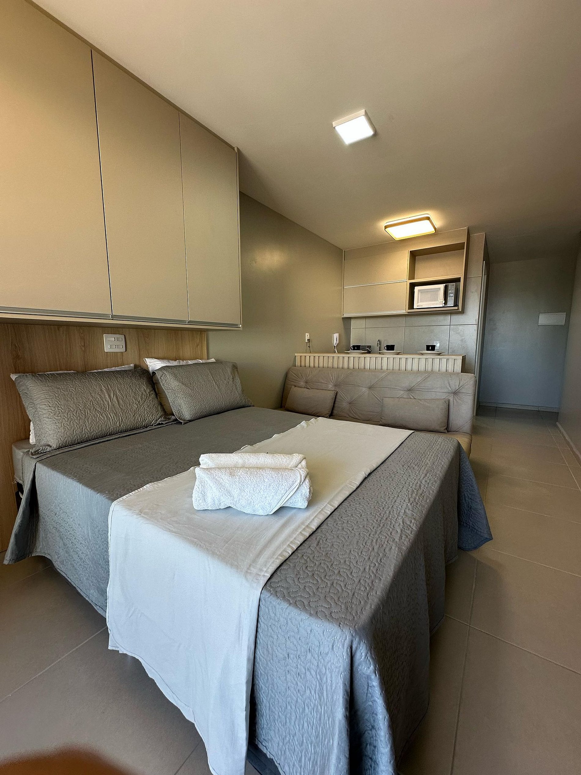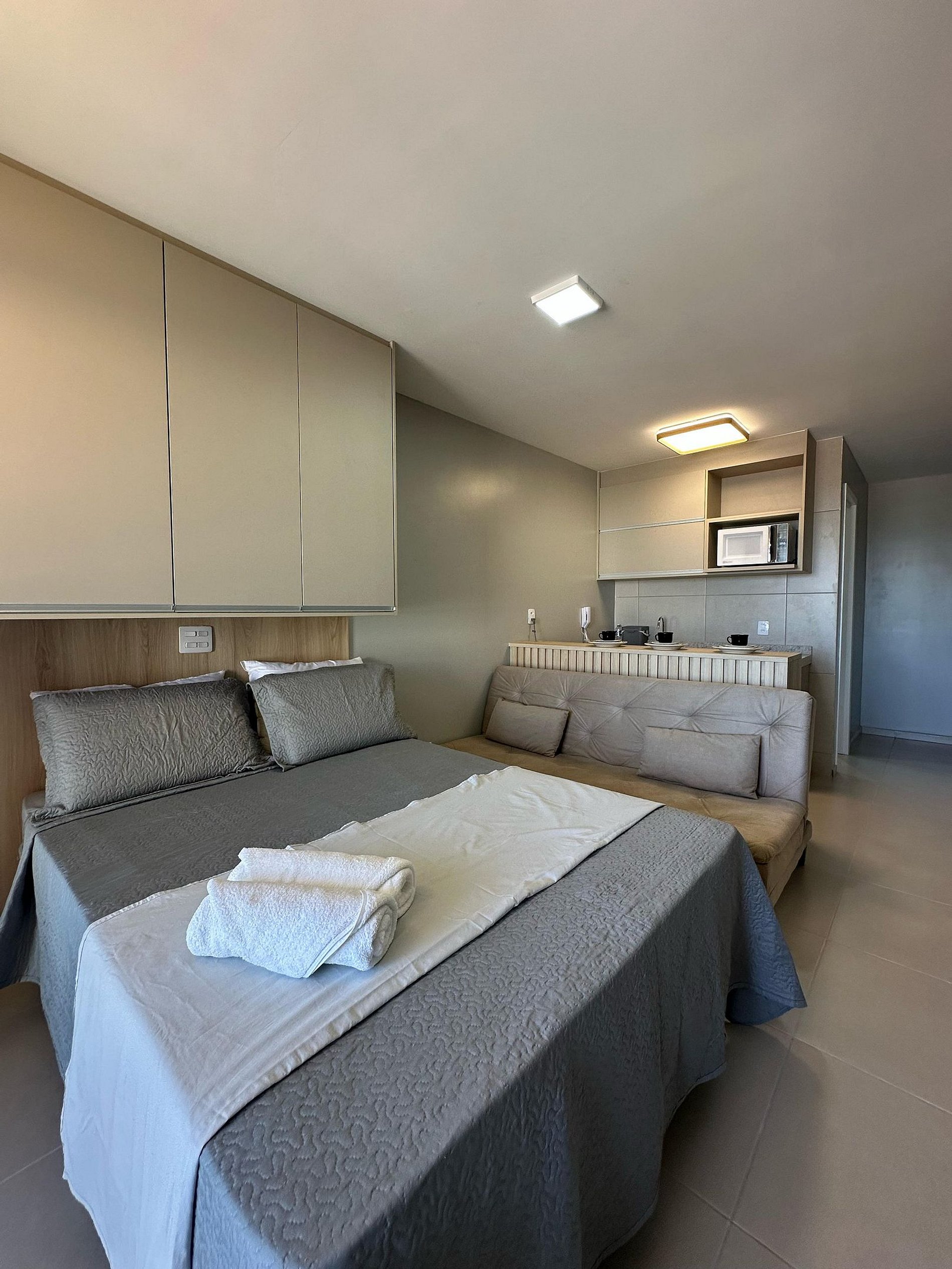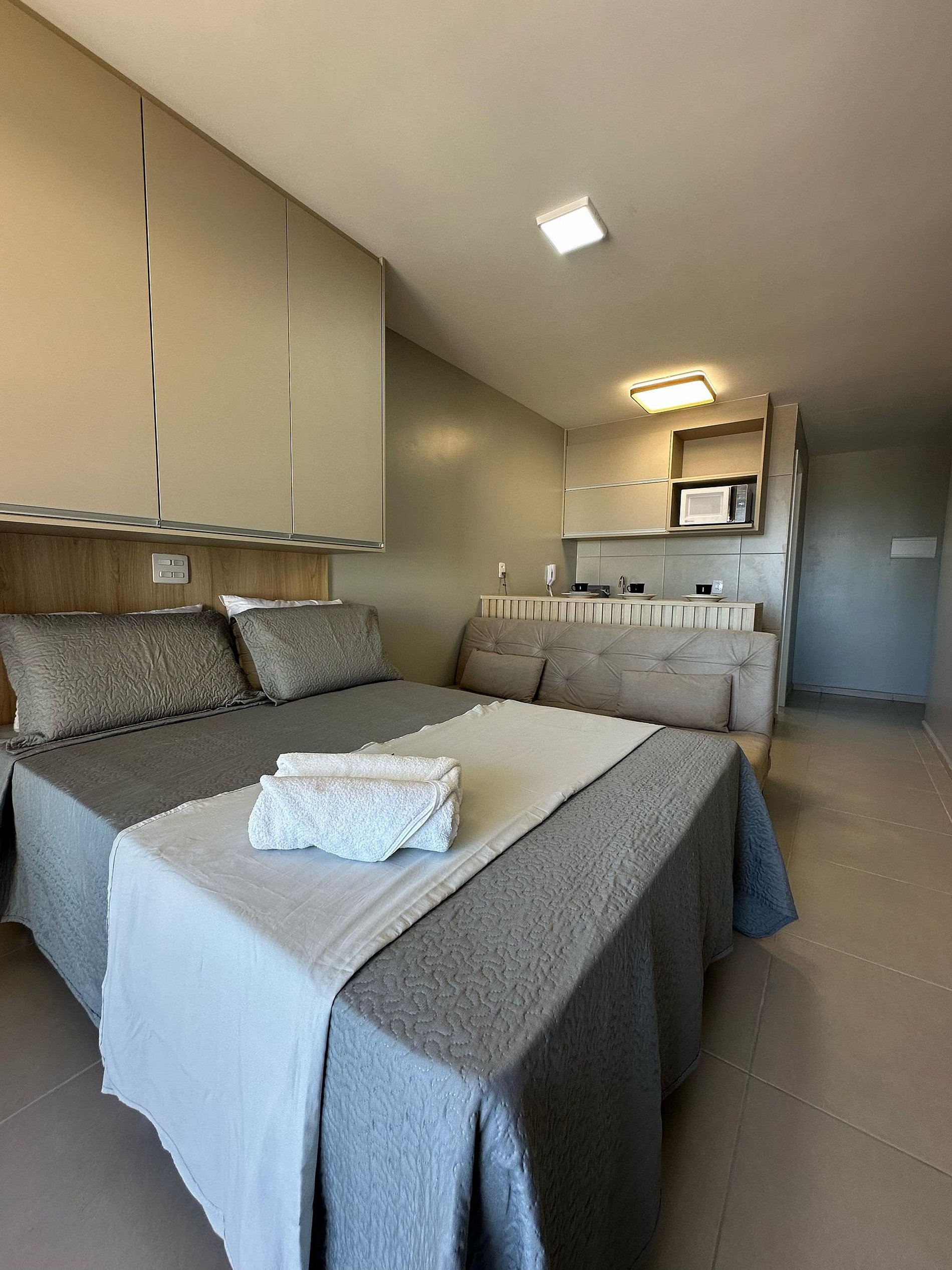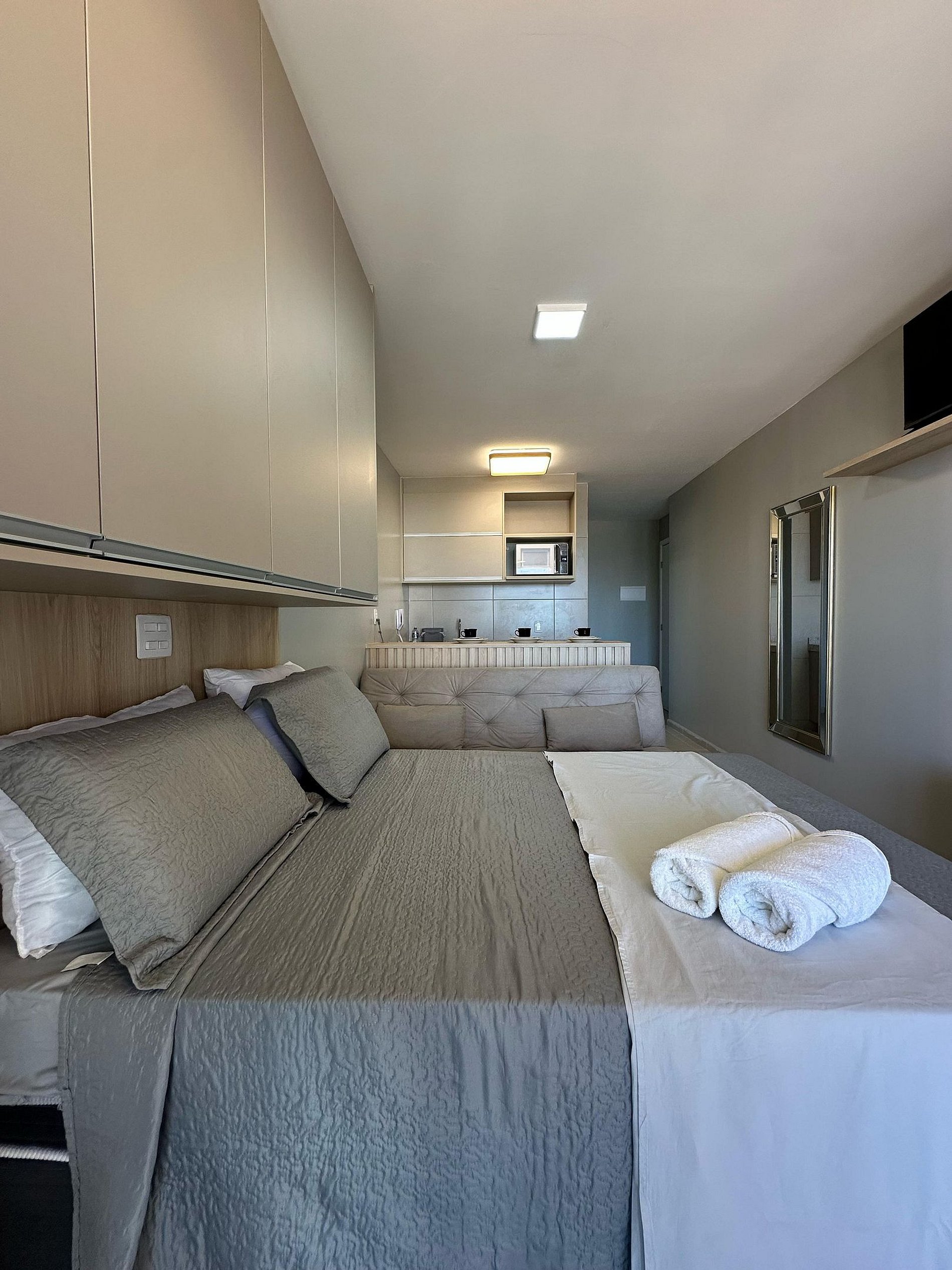Nosso flat conta com apartamentos bem equipados, projetados para proporcionar a você o máximo de conforto. Cada unidade possui ar-condicionado, Wi-Fi gratuito, TV de tela plana e uma cozinha compacta, facilitando sua estadia. Descanse em camas confortáveis e aproveite os detalhes que tornam seu refúgio ainda mais especial.