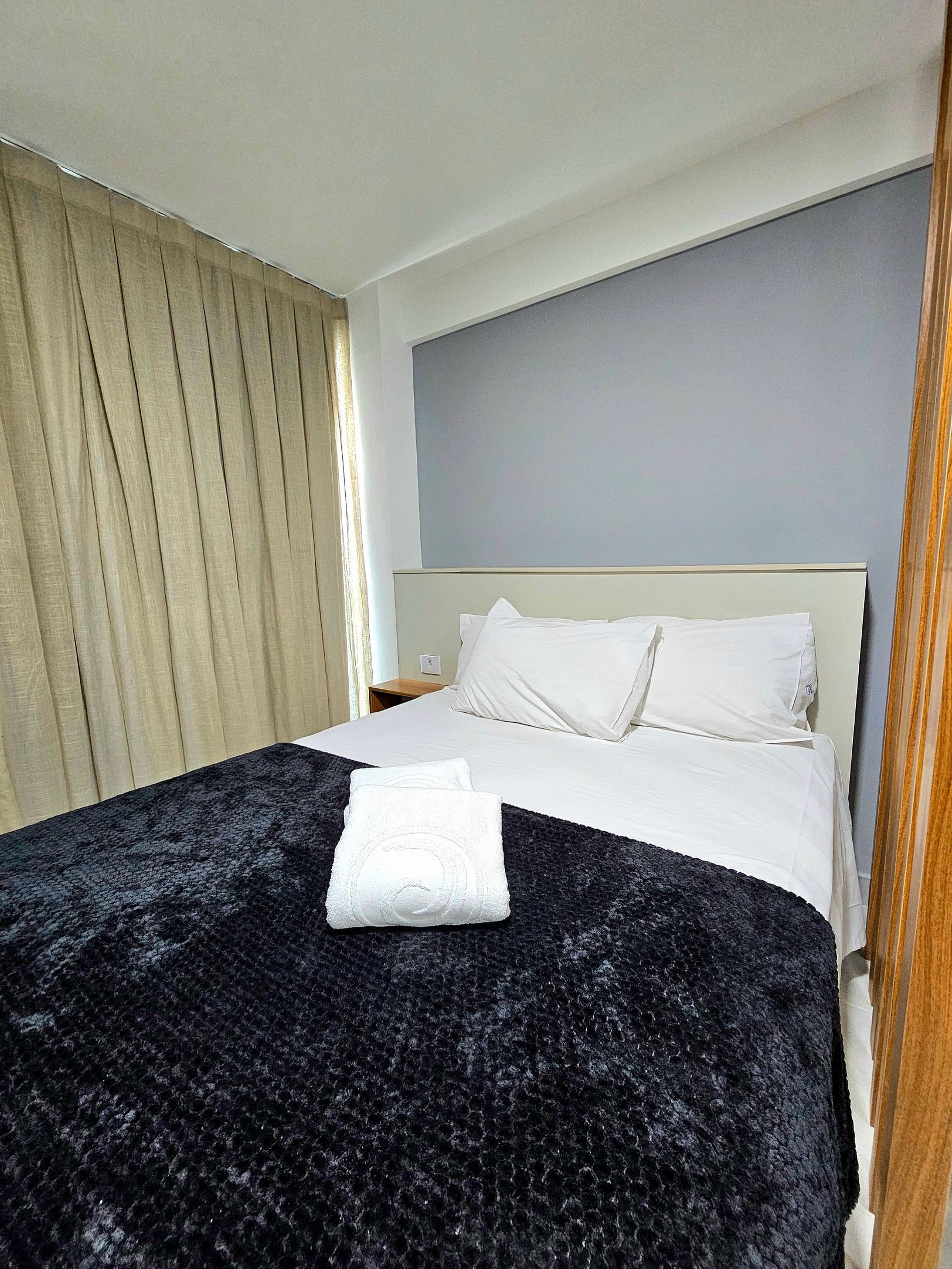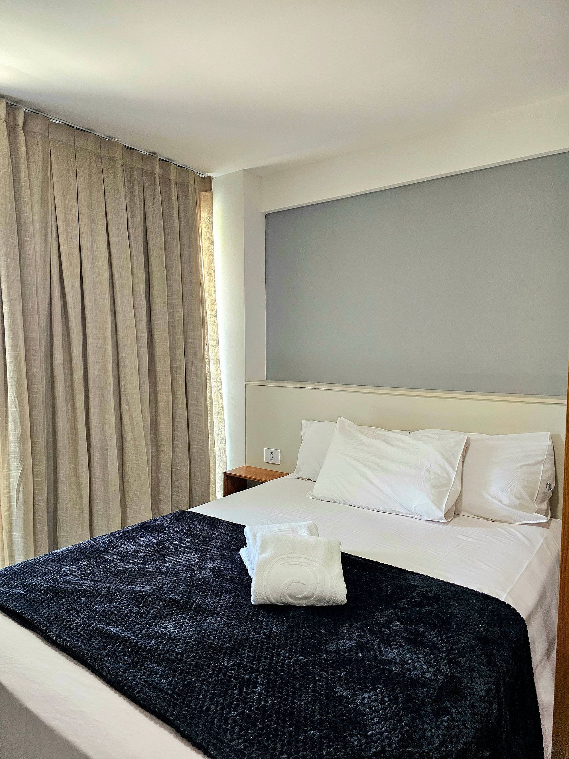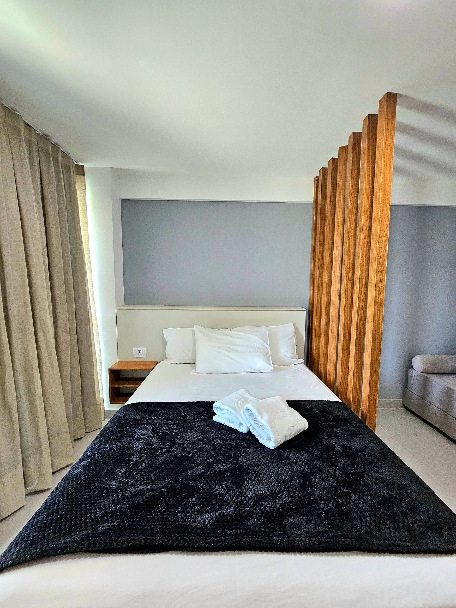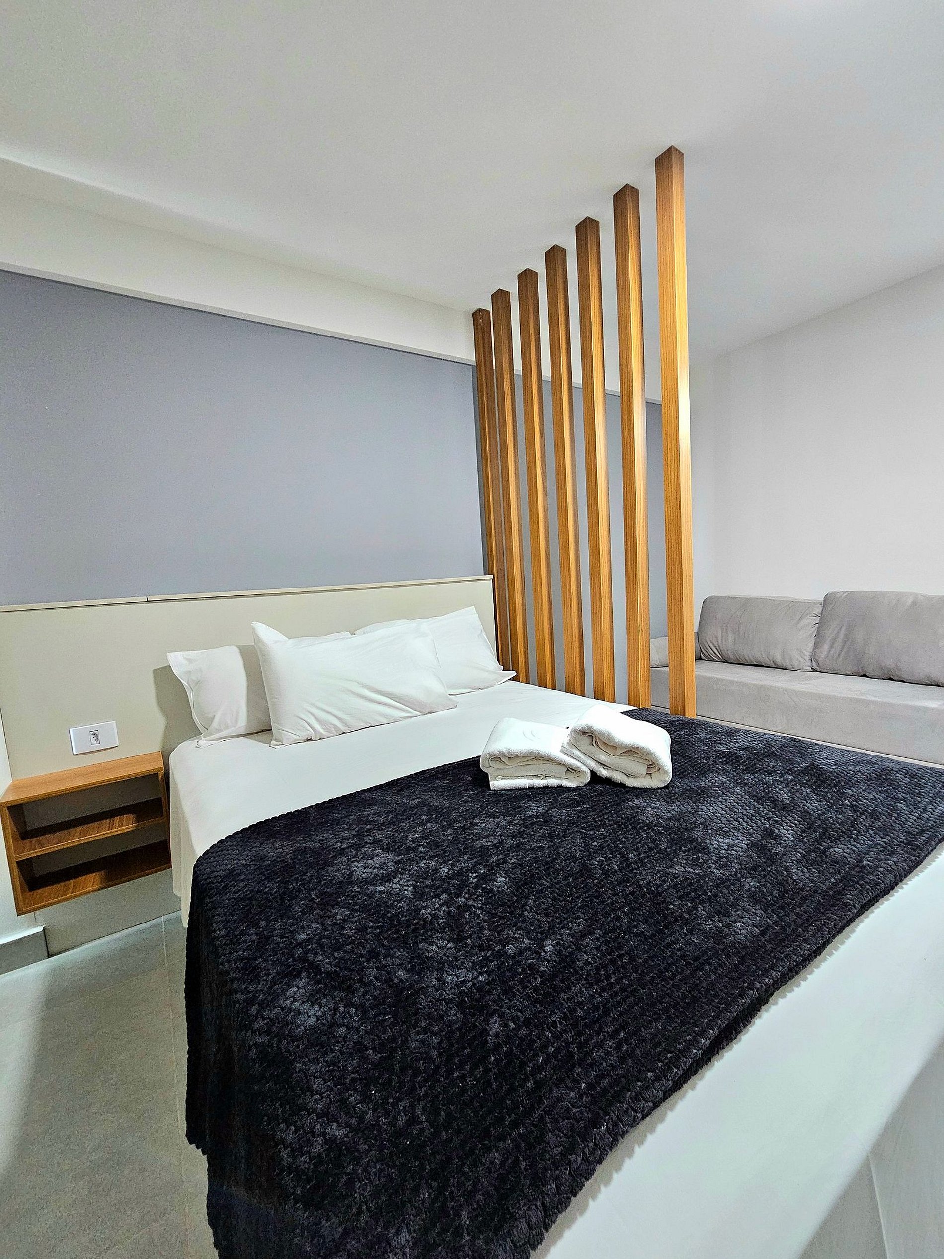 Conforto e Praticidade O studio acomoda confortavelmente até 3 hóspedes, dispondo de uma cama de casal e um excelente sofá-cama. Cada elemento foi pensado para proporcionar o máximo de conforto e uma boa noite de sono.