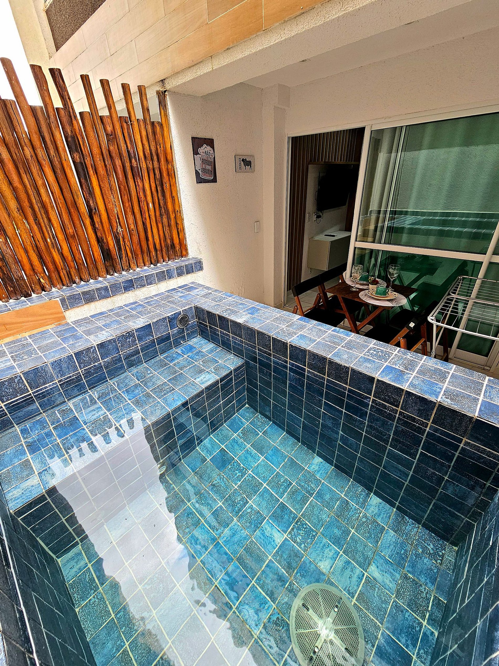 Temos nosso grande diferencial que é nossa piscina privativa na varanda, perfeito para relaxar em um fim de tarde após um longo dia de passeios em Porto de Galinhas.