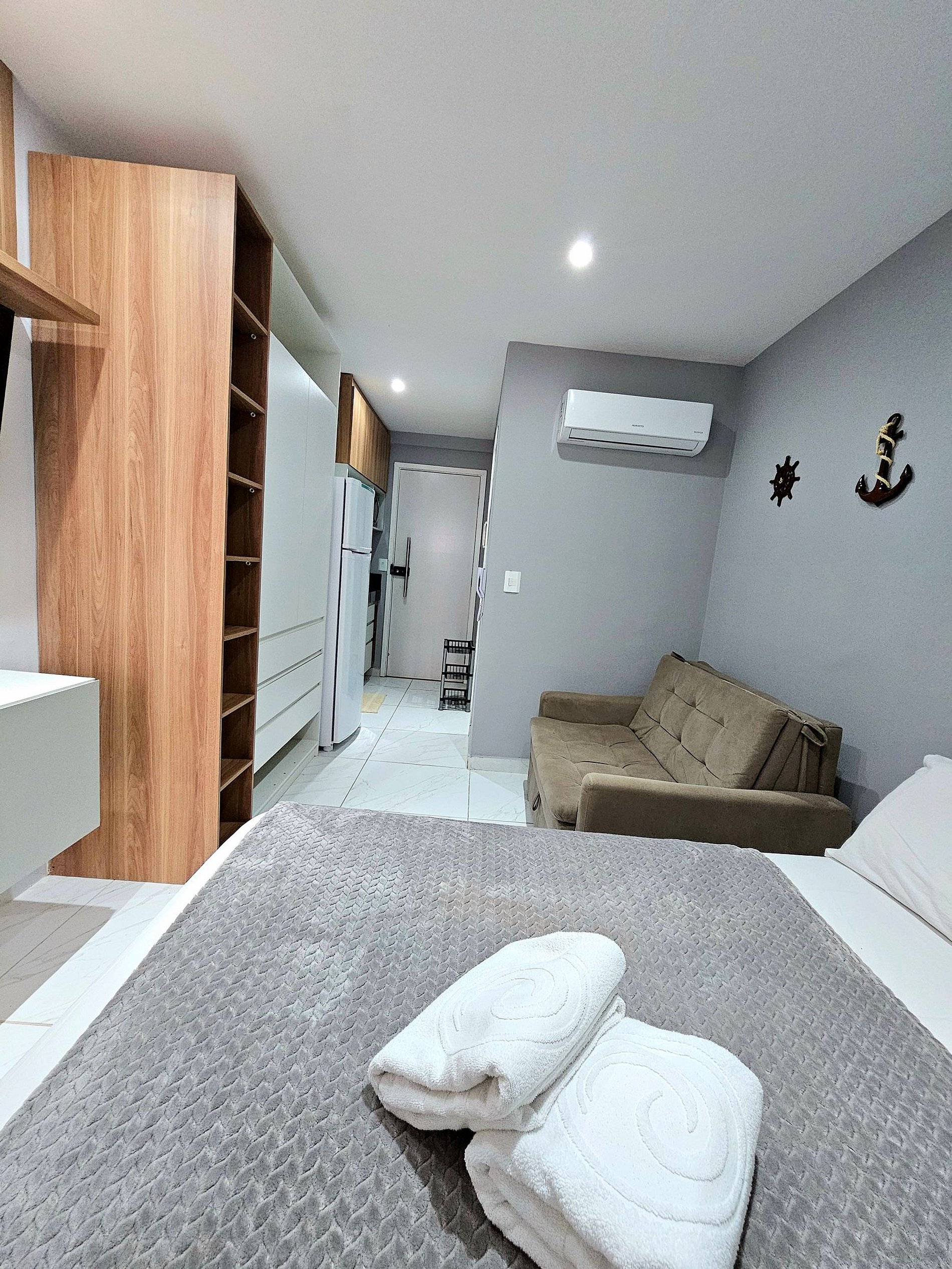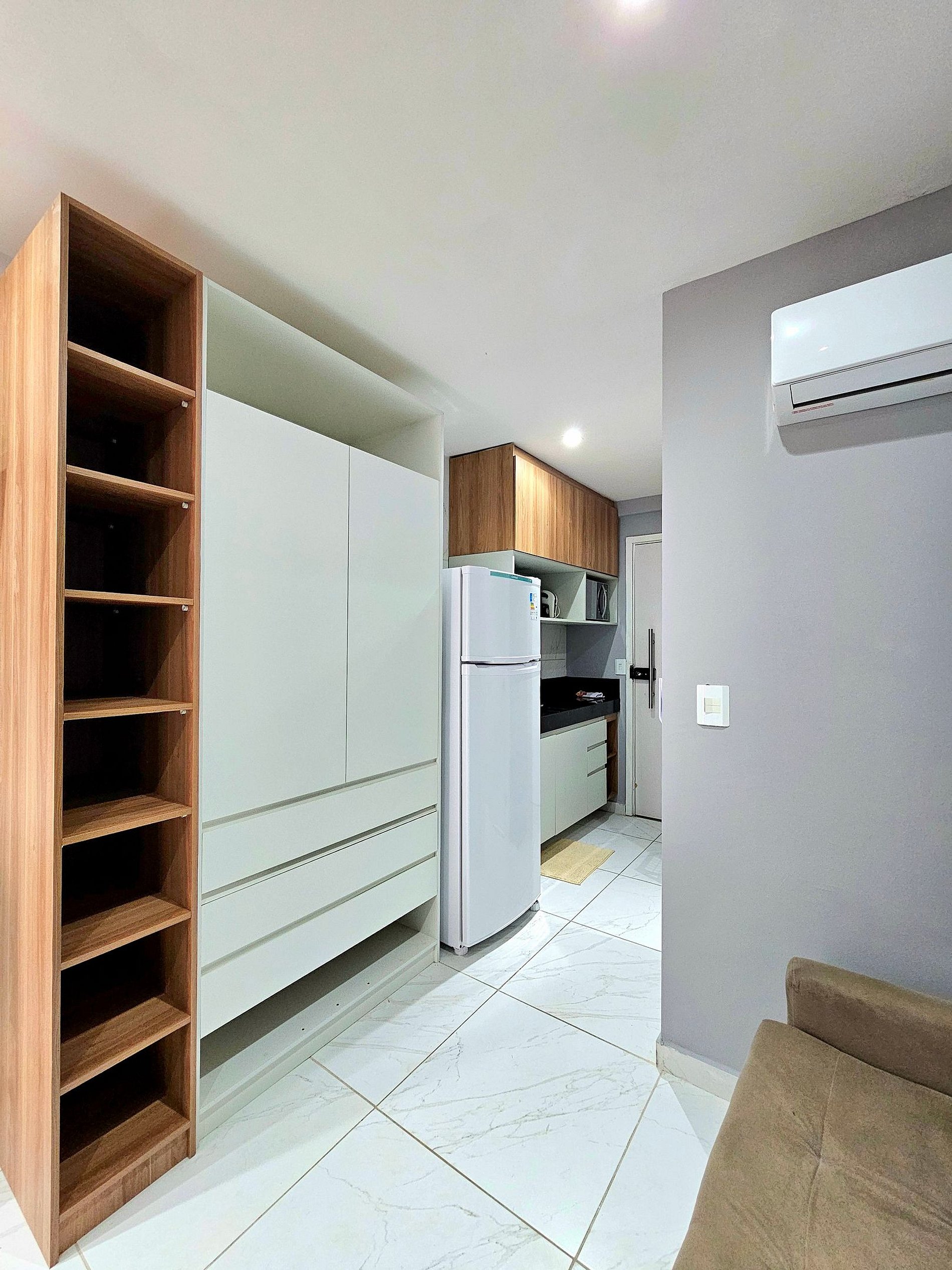 Decoração Moderna e Planejada: A decoração do apartamento segue um estilo moderno e elegante, com detalhes em cores neutras, ideal tanto para momentos de relaxamento quanto para criar um clima especial durante suas noites.