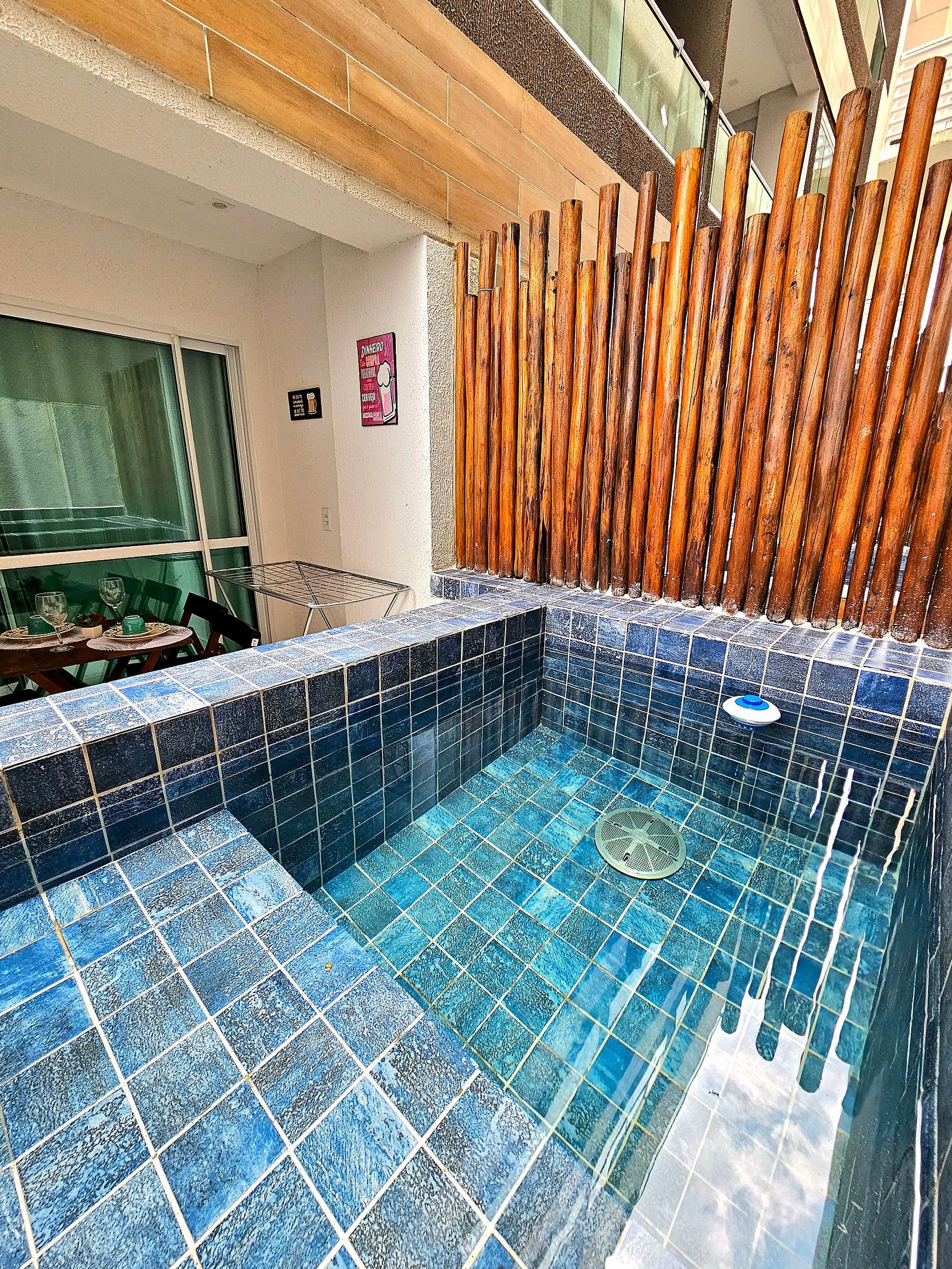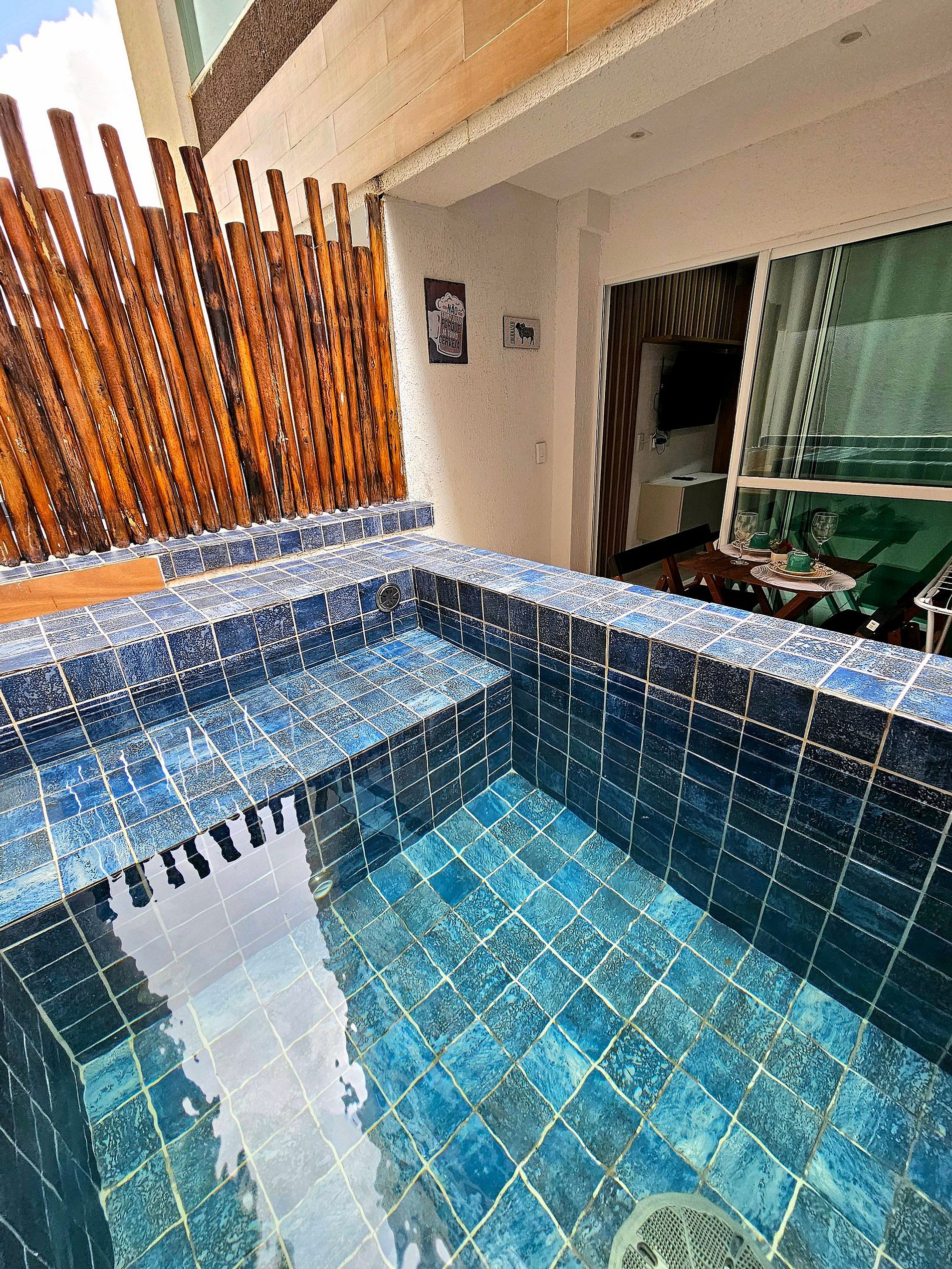 Temos nosso grande diferencial que é nossa piscina privativa na varanda, perfeito para relaxar em um fim de tarde após um longo dia de passeios em Porto de Galinhas.