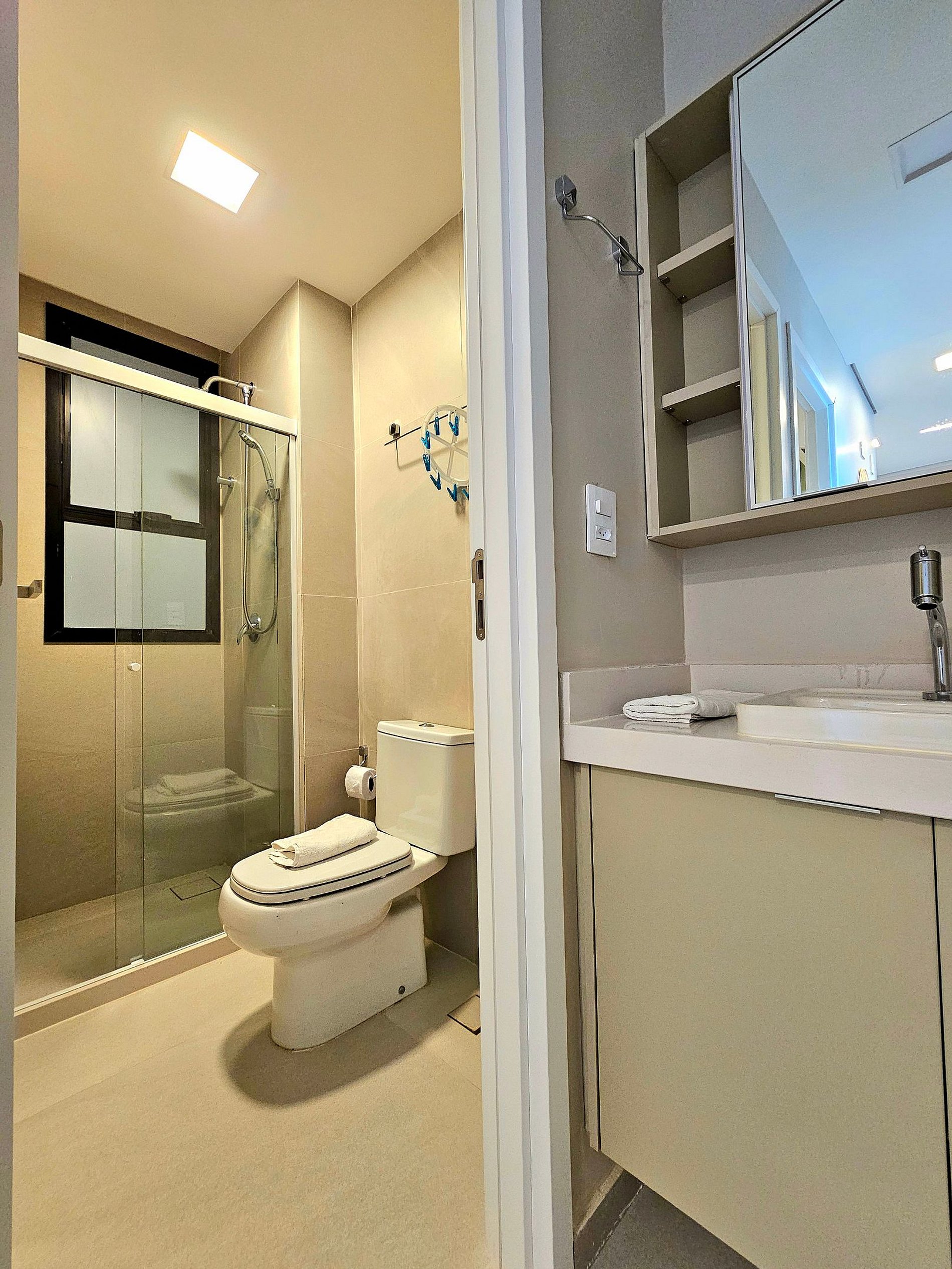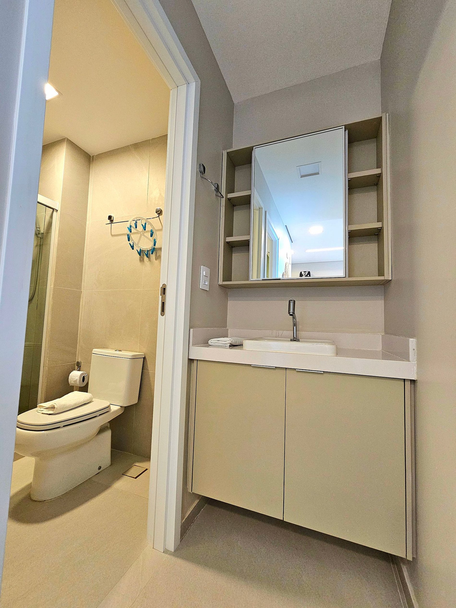 Nosso apartamento todo novo e mobiliado bom bastante requinte possui 2 quartos, 1 banheiro social, uma incrível vista mar da nossa Sala/cozinha gourmet que também é um ambiente com vista panorâmica do Mar e da piscina principal do condomínio.