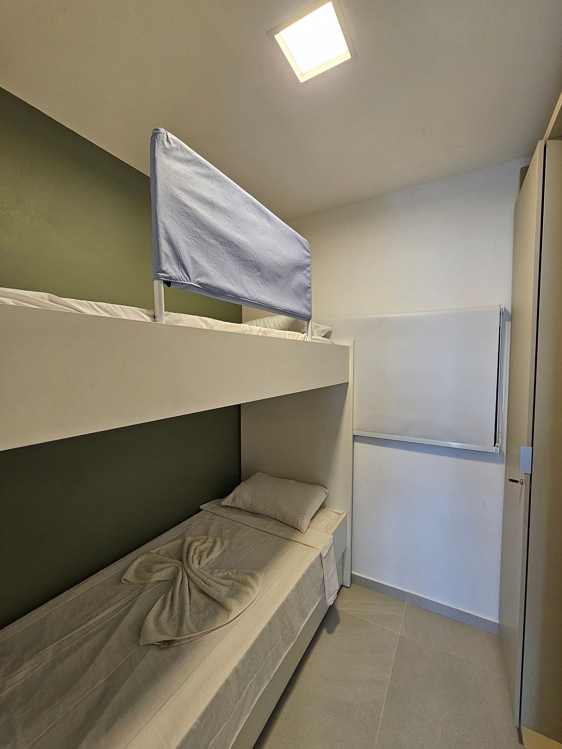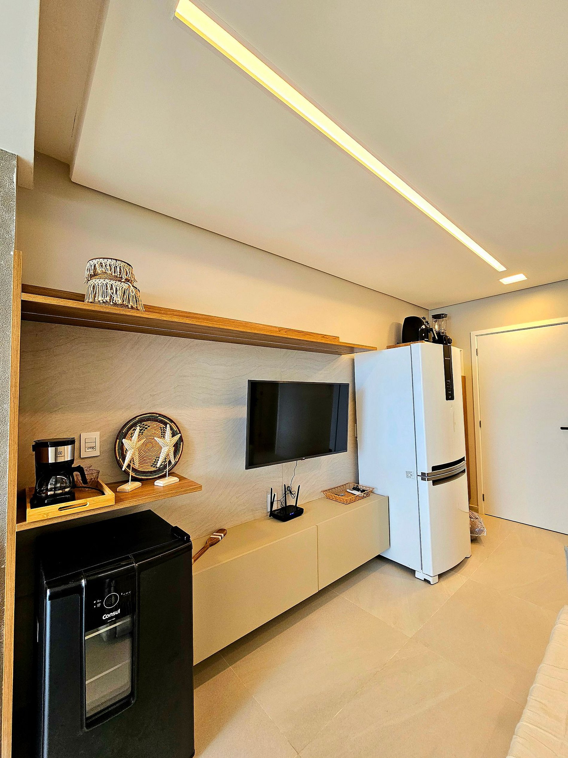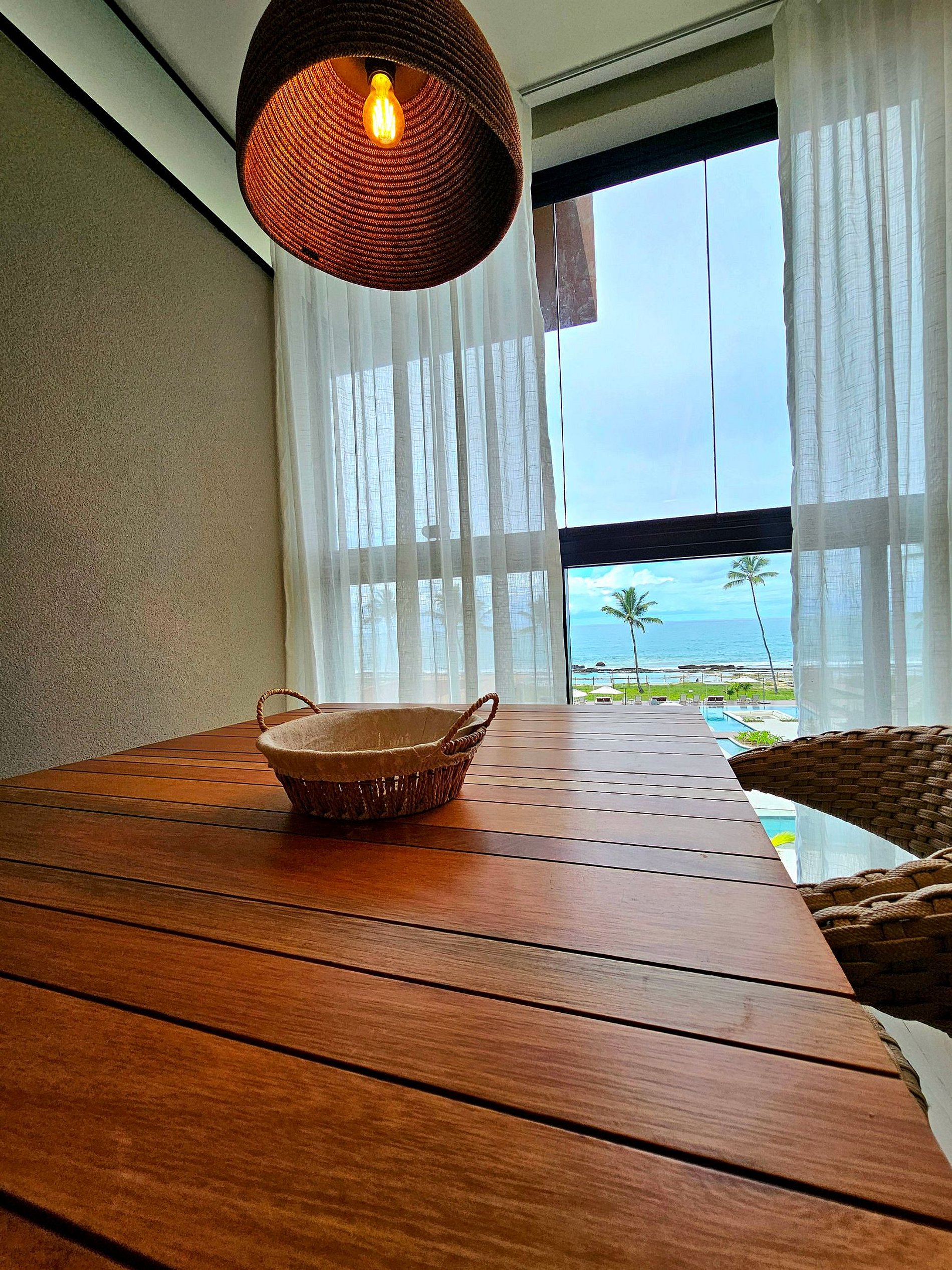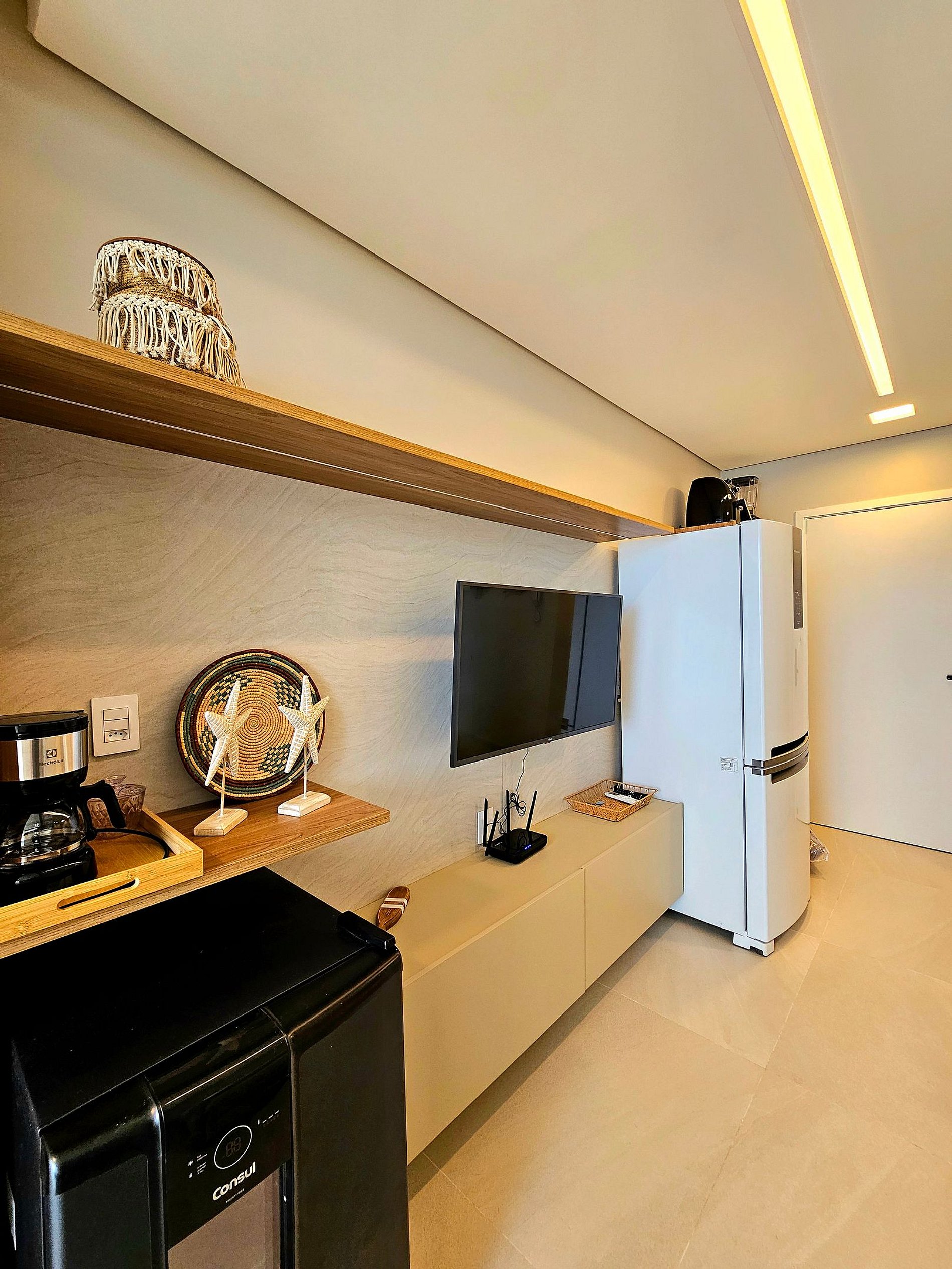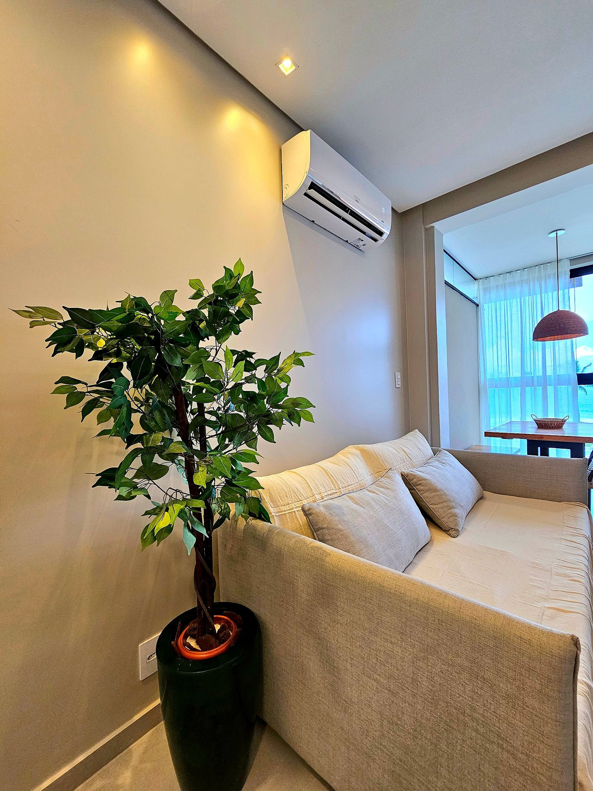 Nosso apartamento todo novo e mobiliado bom bastante requinte possui 2 quartos, 1 banheiro social, uma incrível vista mar da nossa Sala/cozinha gourmet que também é um ambiente com vista panorâmica do Mar e da piscina principal do condomínio.