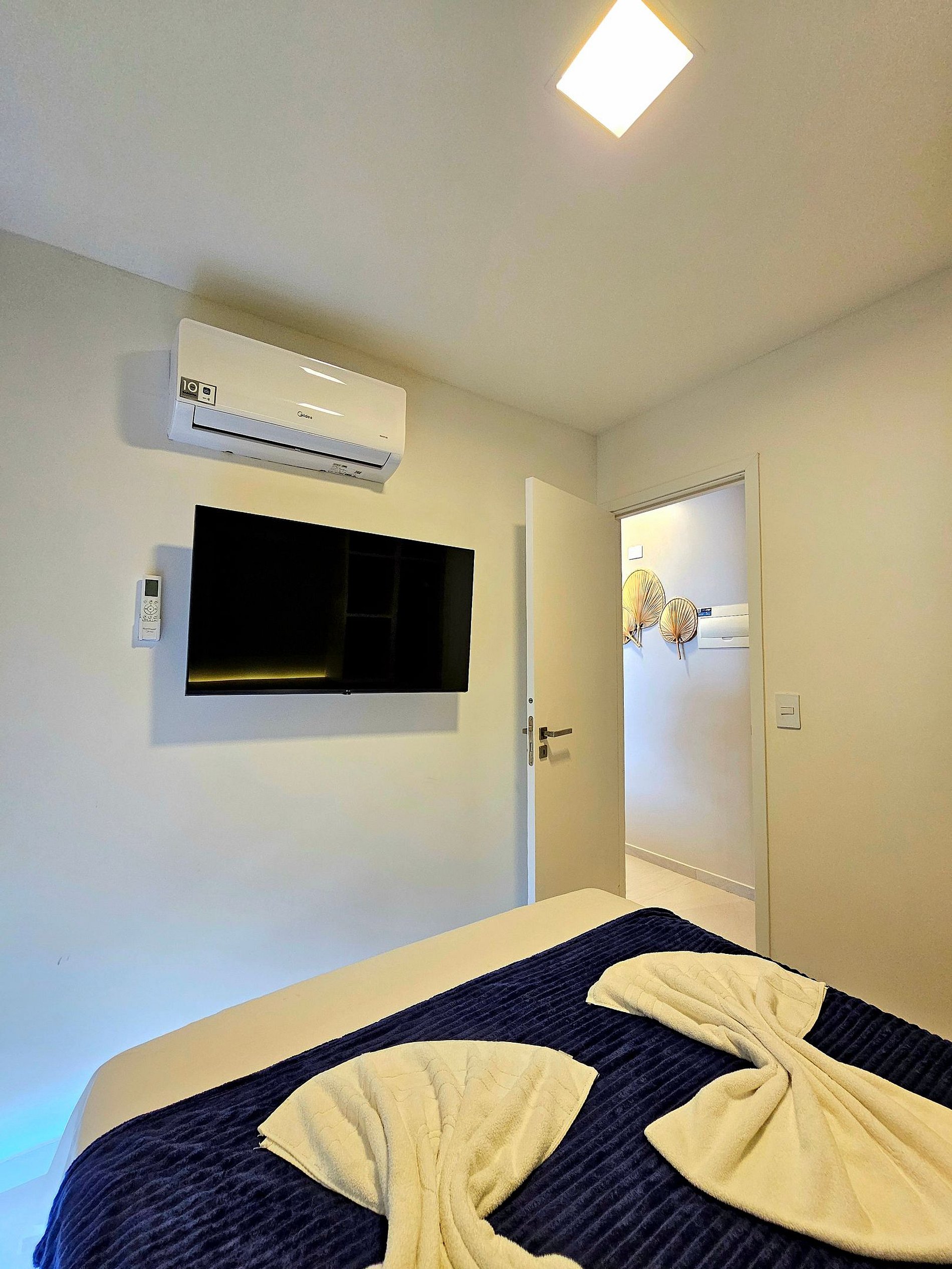 Ar condicionado em todos os quartos e também na sala, acomodamos até 4 adultos e 1 criança (Temos uma excelente cama de casal em um dos quartos e no segundo quarto uma cama de solteiro com auxiliar embaixo e um beliche pra uma criança em cima), temos cozinha completa e equipada, além de uma estrutura completa que o nosso condomínio proporciona, incluindo mesas e cadeiras em um deck beira-mar.