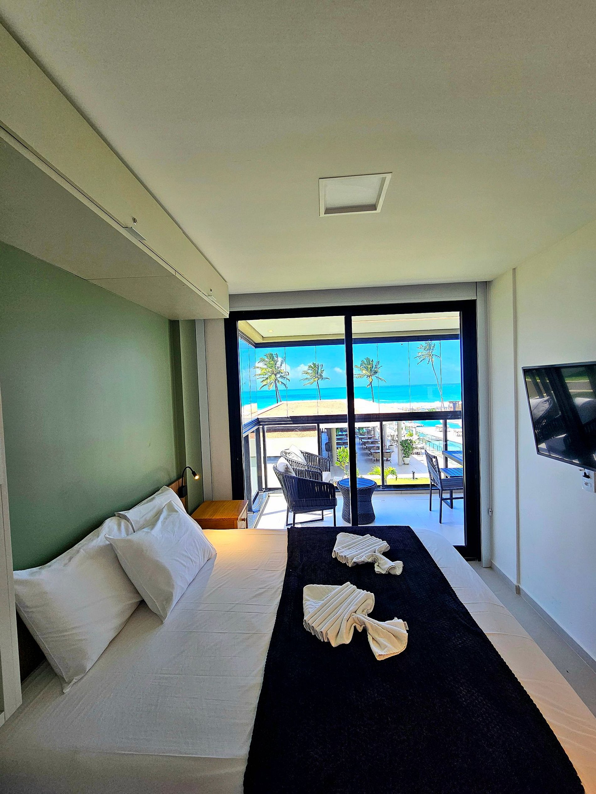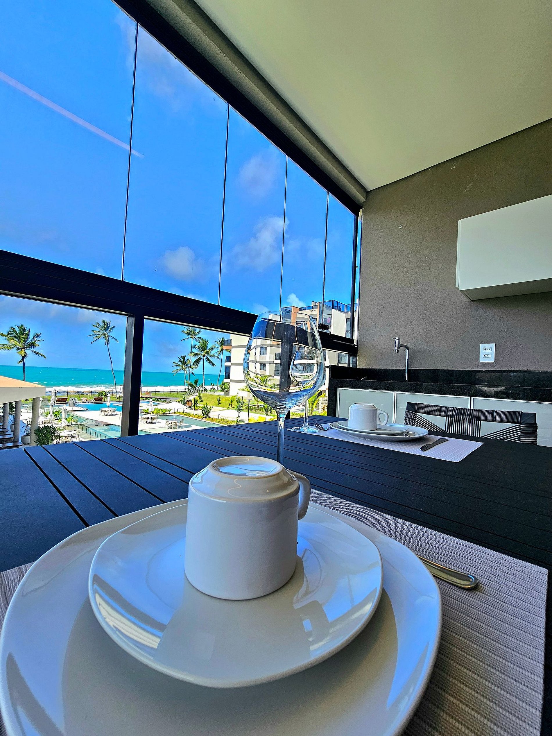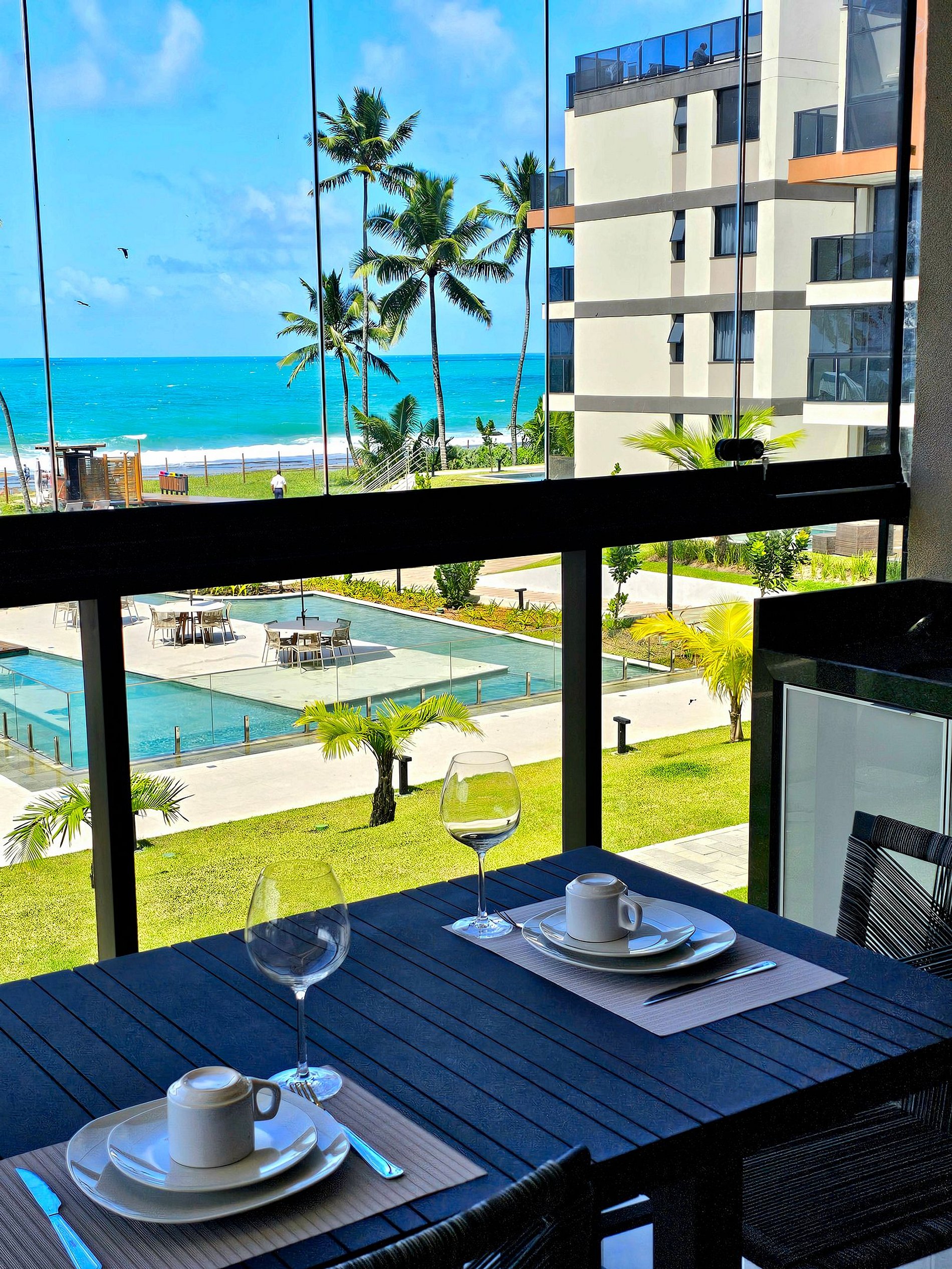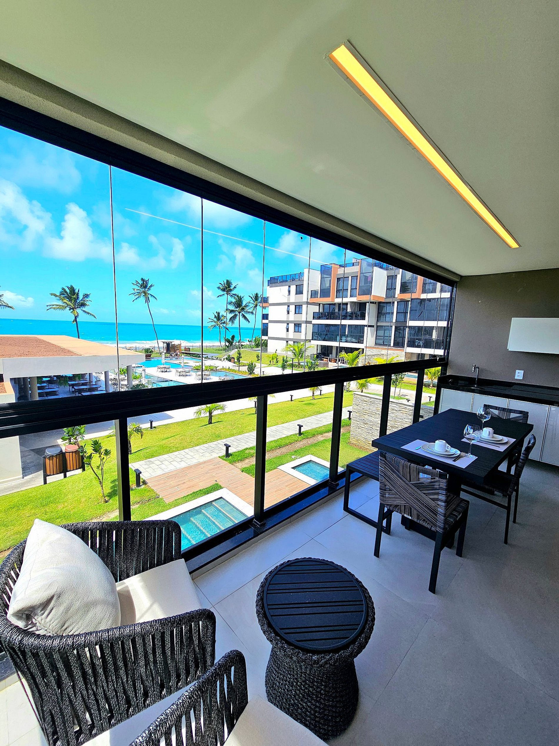 Nosso apartamento todo novo possui 2 suítes, Vista Mar em todos os quartos e nossa Varanda gourmet com vista panorâmica do Mar e da piscina principal do condomínio.