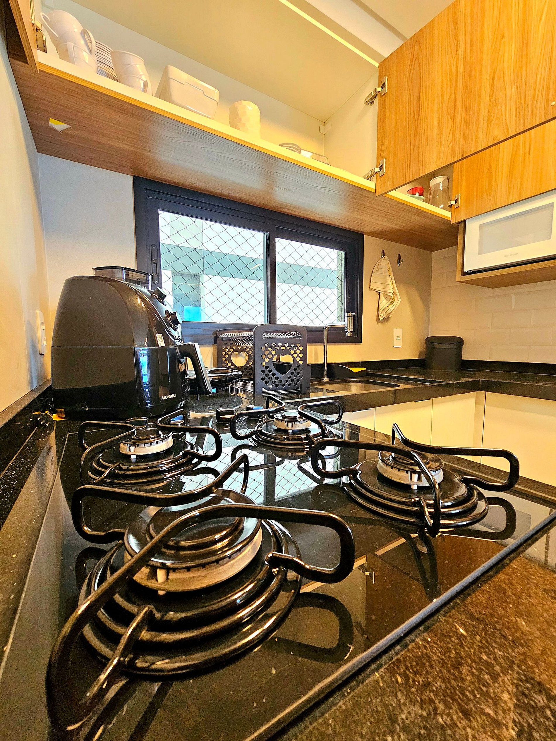 Nosso espaço foi pensado nos mínimos detalhes para proporcionar o máximo de conforto aos nossos hóspedes, temos os principais eletrodomésticos que podem precisar (Airfryer, sanduicheira, cafeteira, liquidificador, microondas, etc..), camas confortáveis, iluminação e decoração moderna.