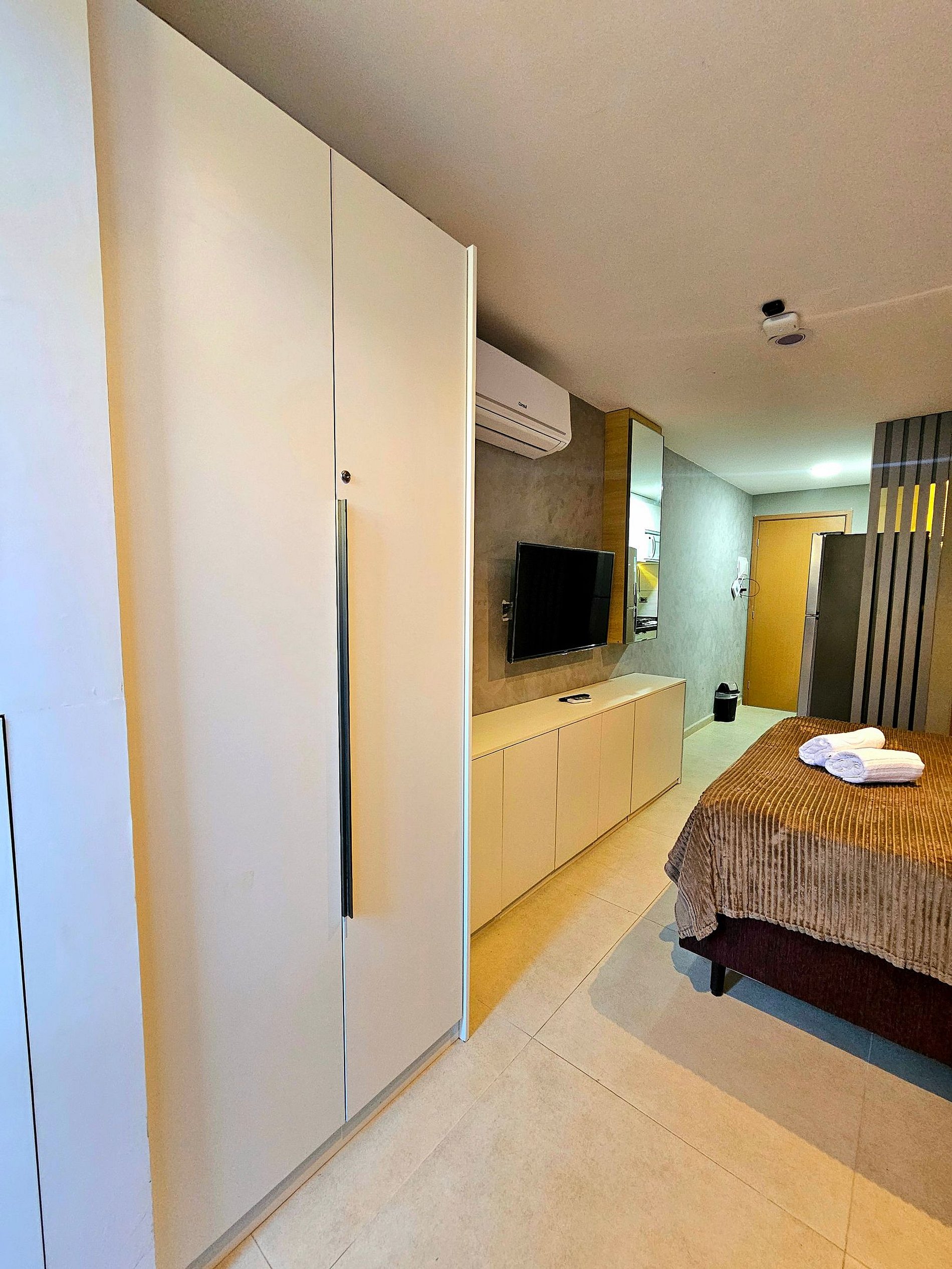 Decoração Moderna e Iluminação Planejada: A decoração do apartamento segue um estilo moderno e elegante, com detalhes em cores neutras que criam uma atmosfera aconchegante e sofisticada. As luzes estrategicamente posicionadas proporcionam um ambiente acolhedor, ideal tanto para momentos de relaxamento quanto para criar um clima especial durante suas noites no Reserva do Cupe