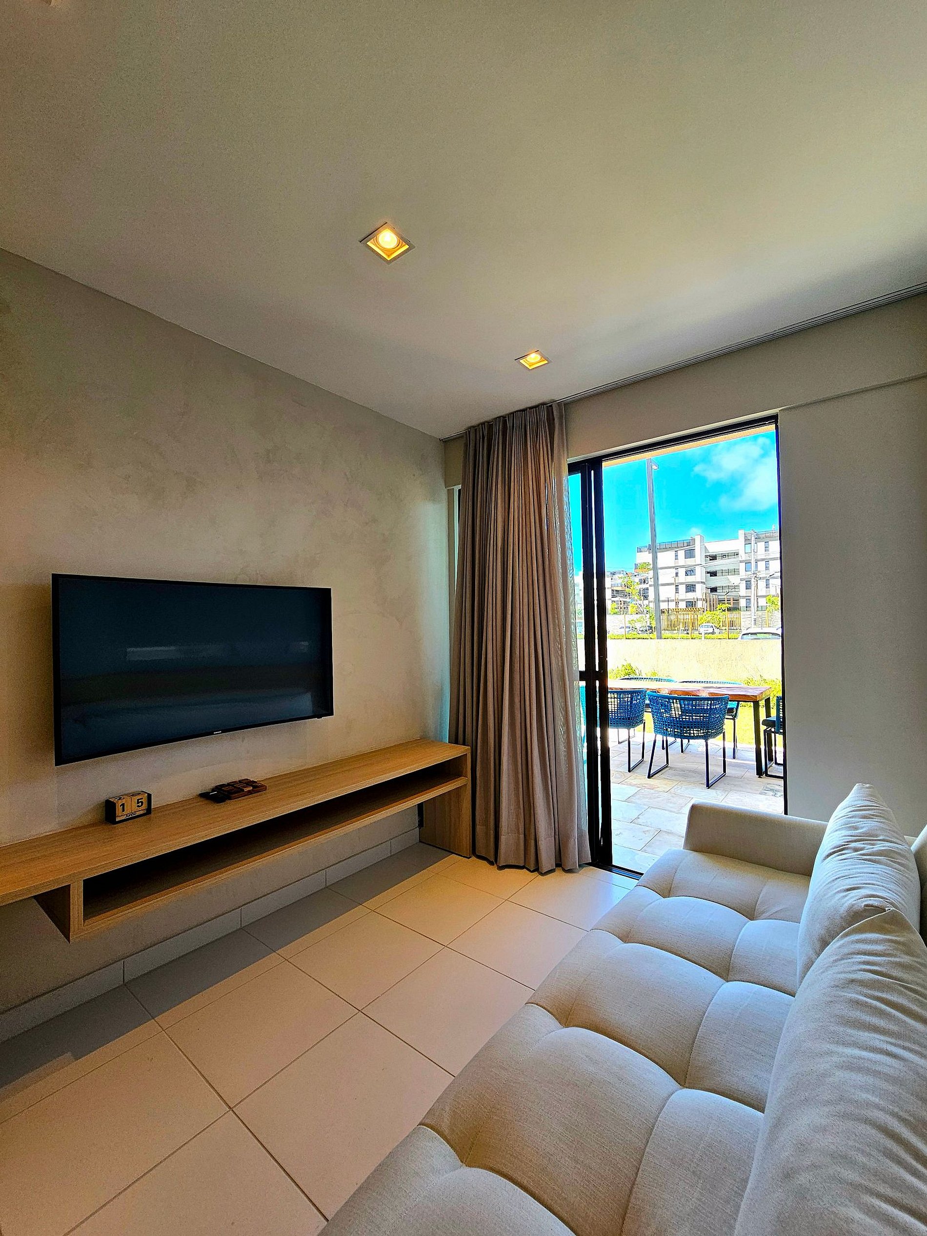 O Flat possui uma decoração sofisticada que proporciona um ambiente relaxante após um dia de passeios em Porto de Galinhas e Muro Alto. temos uma sala ampla para maior comodidade dos nossos hóspedes.