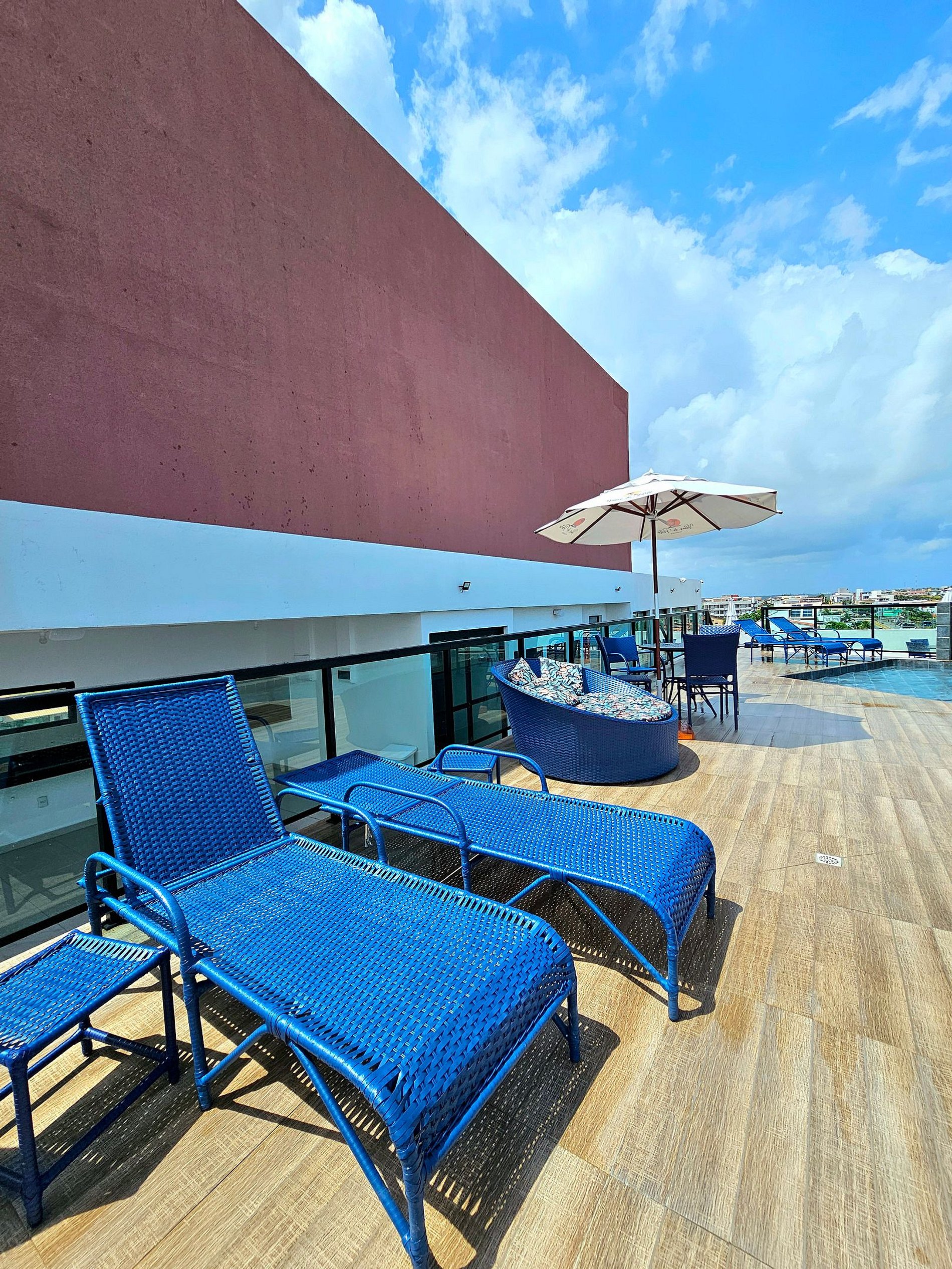 O Condomínio possui um incrível Rooftop com uma linda piscina com vista panorâmica para a cidade, área gourmet, equipado com mesas, cadeiras e espreguiçadeiras.
