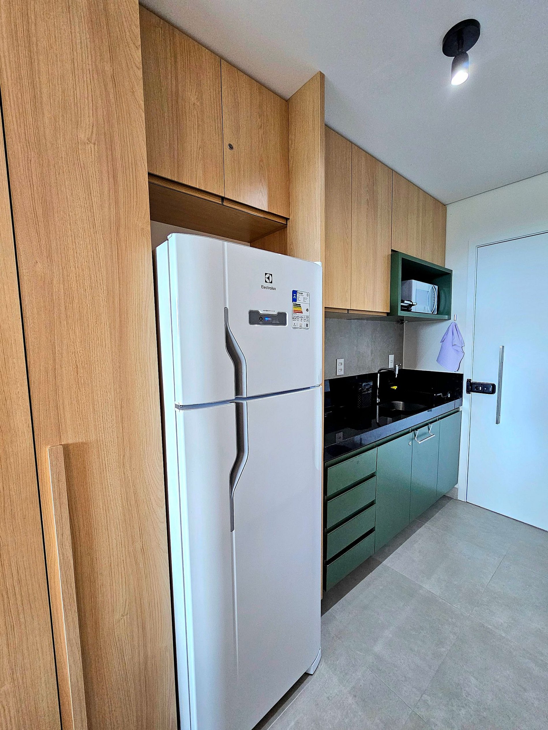 A cozinha completa é equipada com os principais eletrodomésticos, como geladeira, microondas, cooktop eletrico, cafeteira, liquidificador, sanduicheira e airfryer, além de todos os utensílios necessários para que você possa preparar suas refeições de maneira prática e confortável.