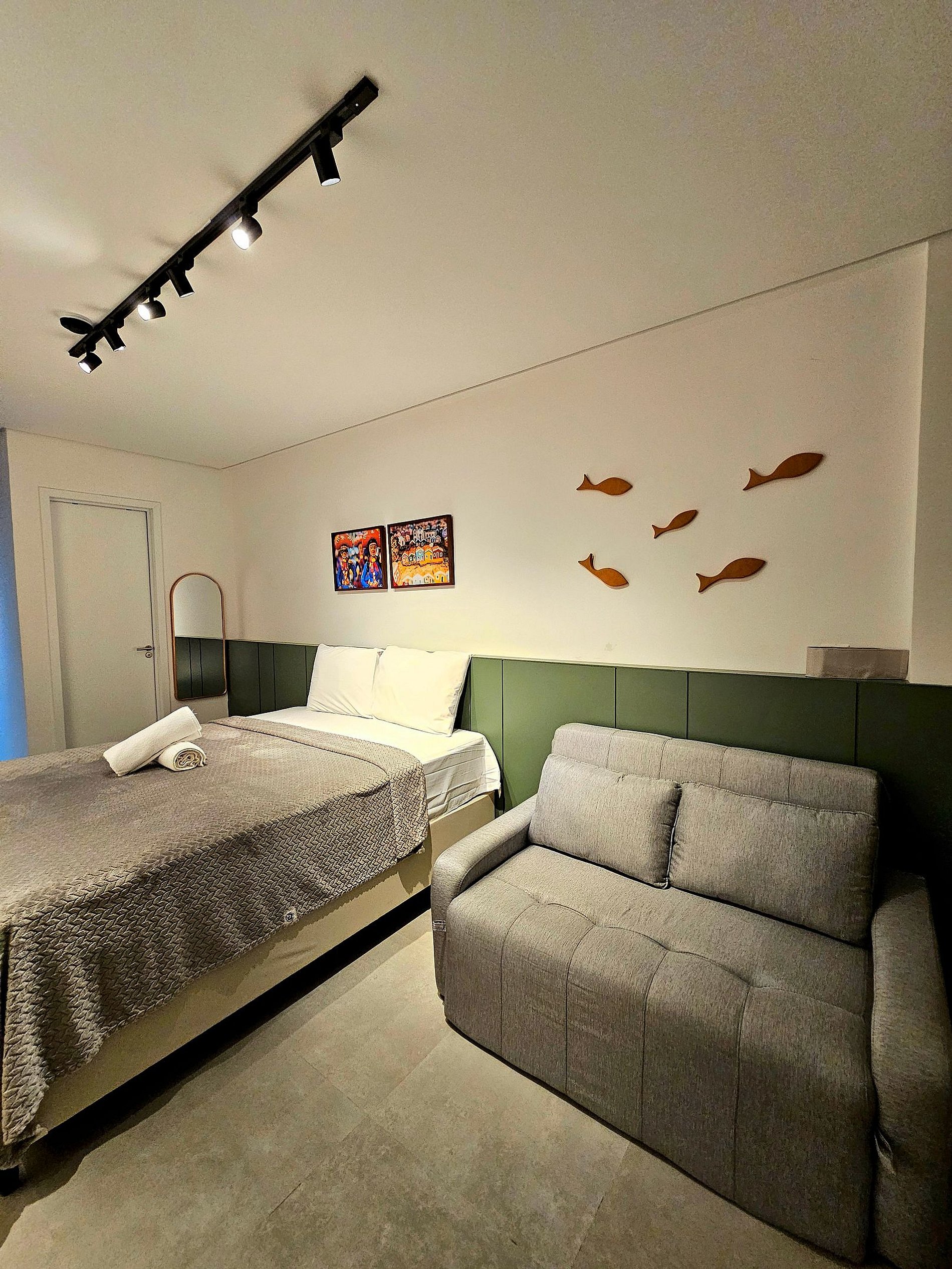 Nosso Lindo e equipado studio com varanda gourmet foi planejado para proporcionar o máximo de conforto aos seus hóspedes.