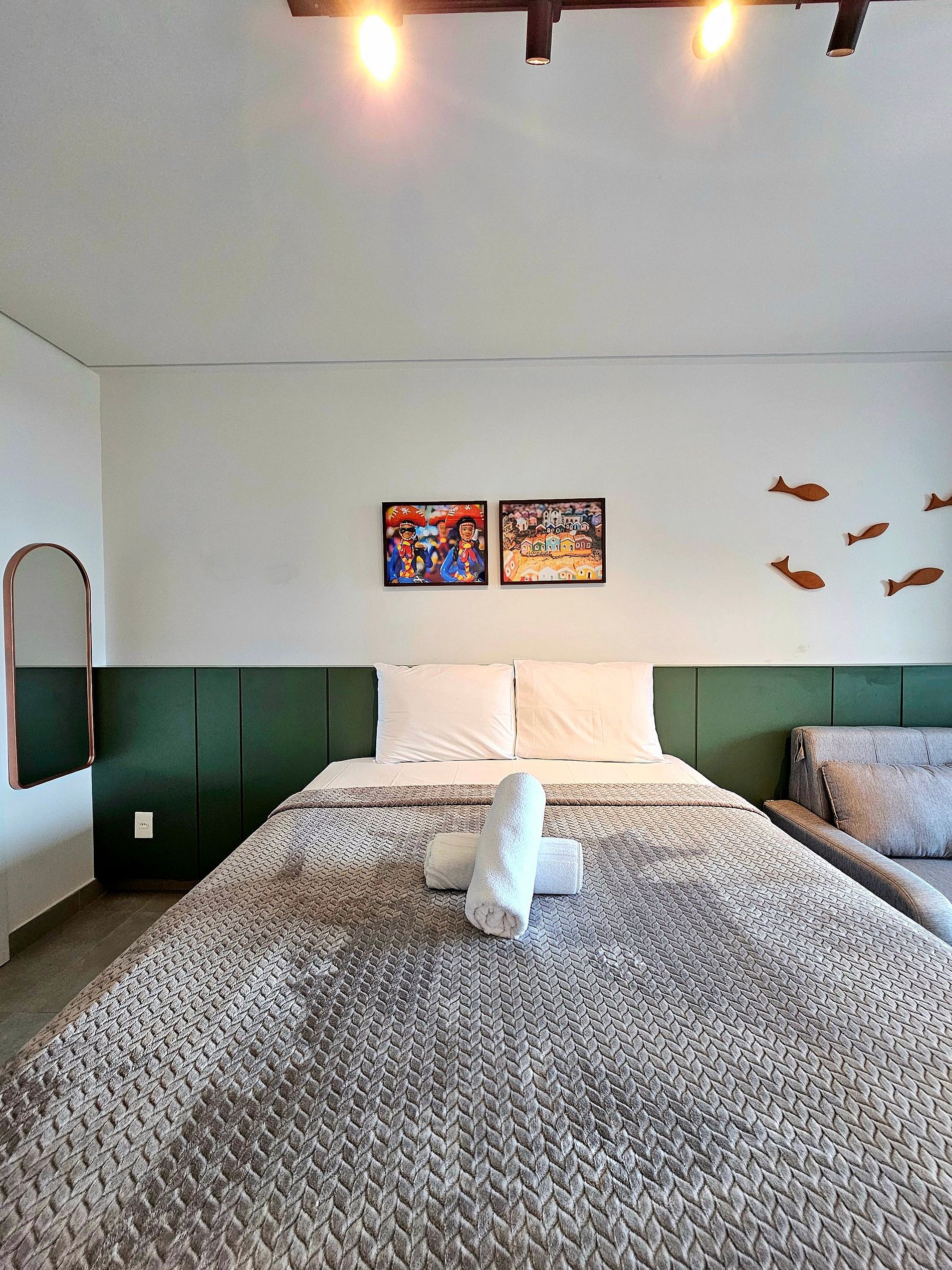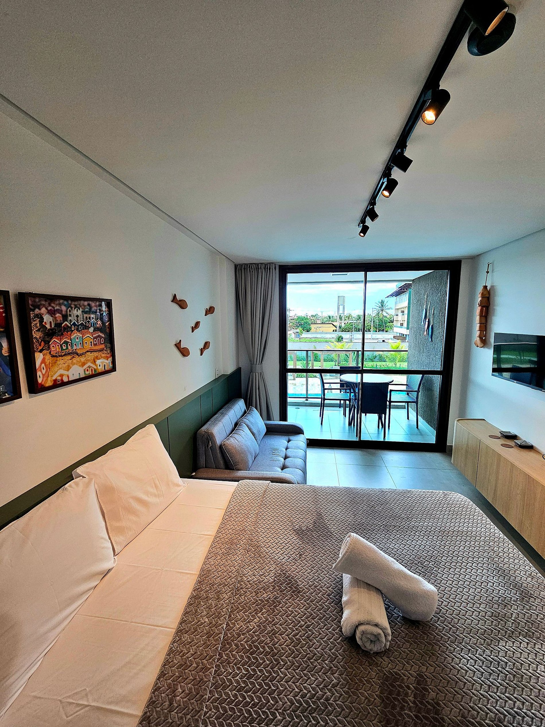 O Flat possui uma decoração sofisticada que proporciona um ambiente relaxante após um dia de passeios em Porto de Galinhas e Muro Alto.