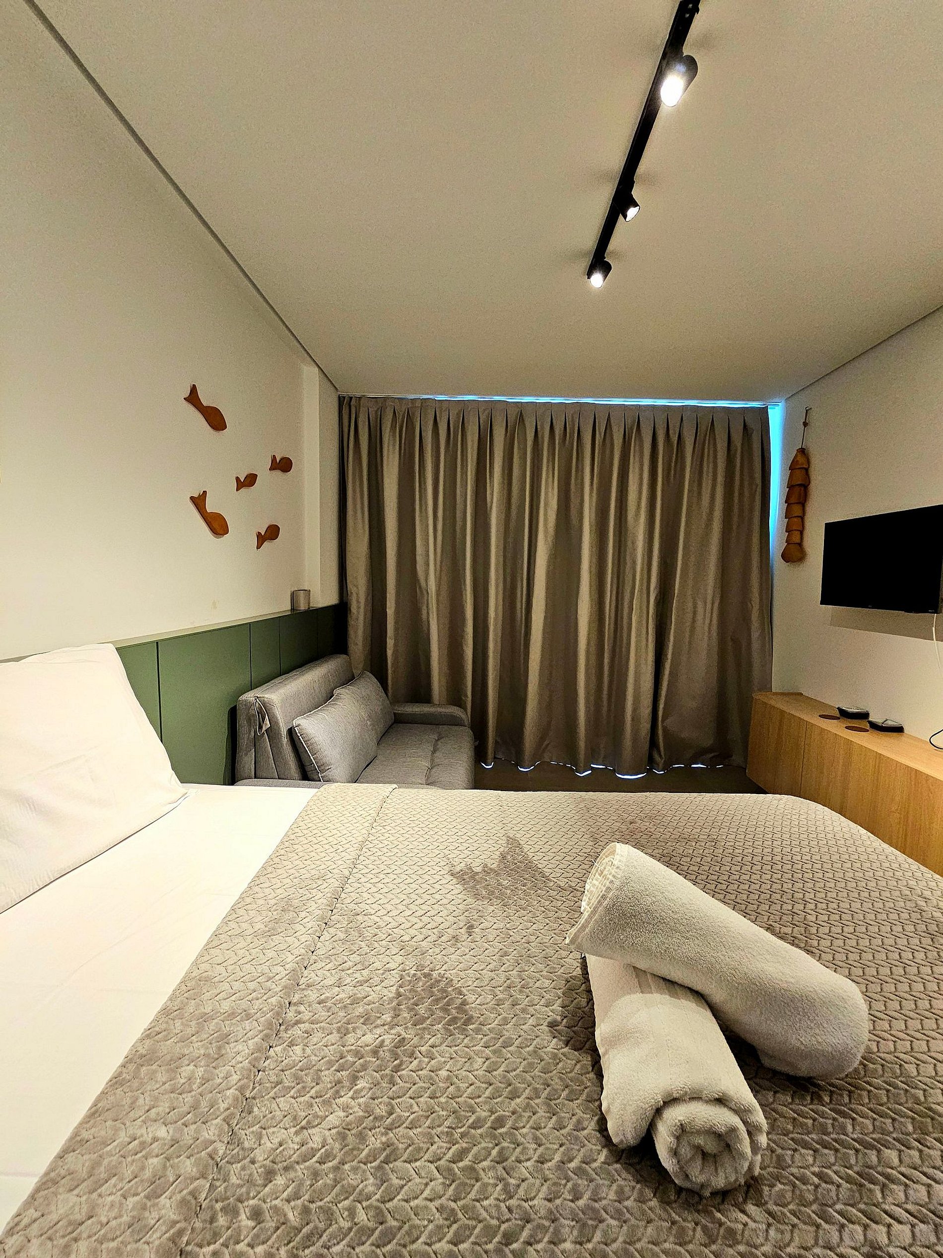 Nosso Lindo e equipado studio com varanda gourmet foi planejado para proporcionar o máximo de conforto aos seus hóspedes.