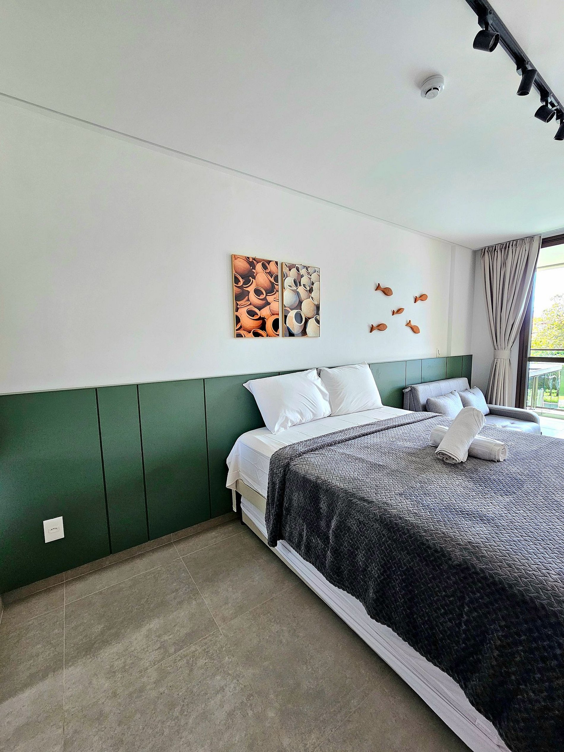 O Flat possui uma decoração sofisticada que proporciona um ambiente relaxante após um dia de passeios em Porto de Galinhas e Muro Alto.