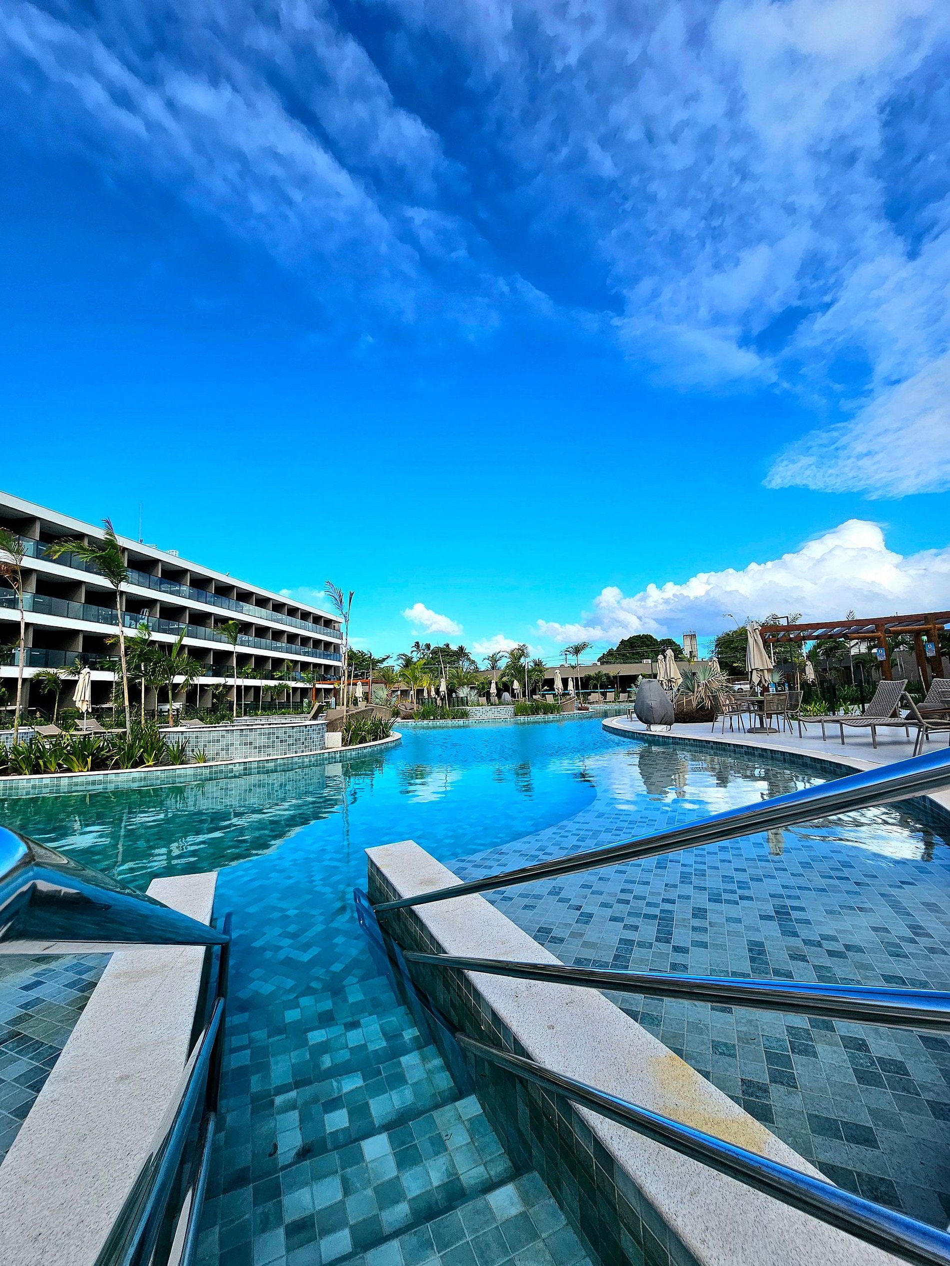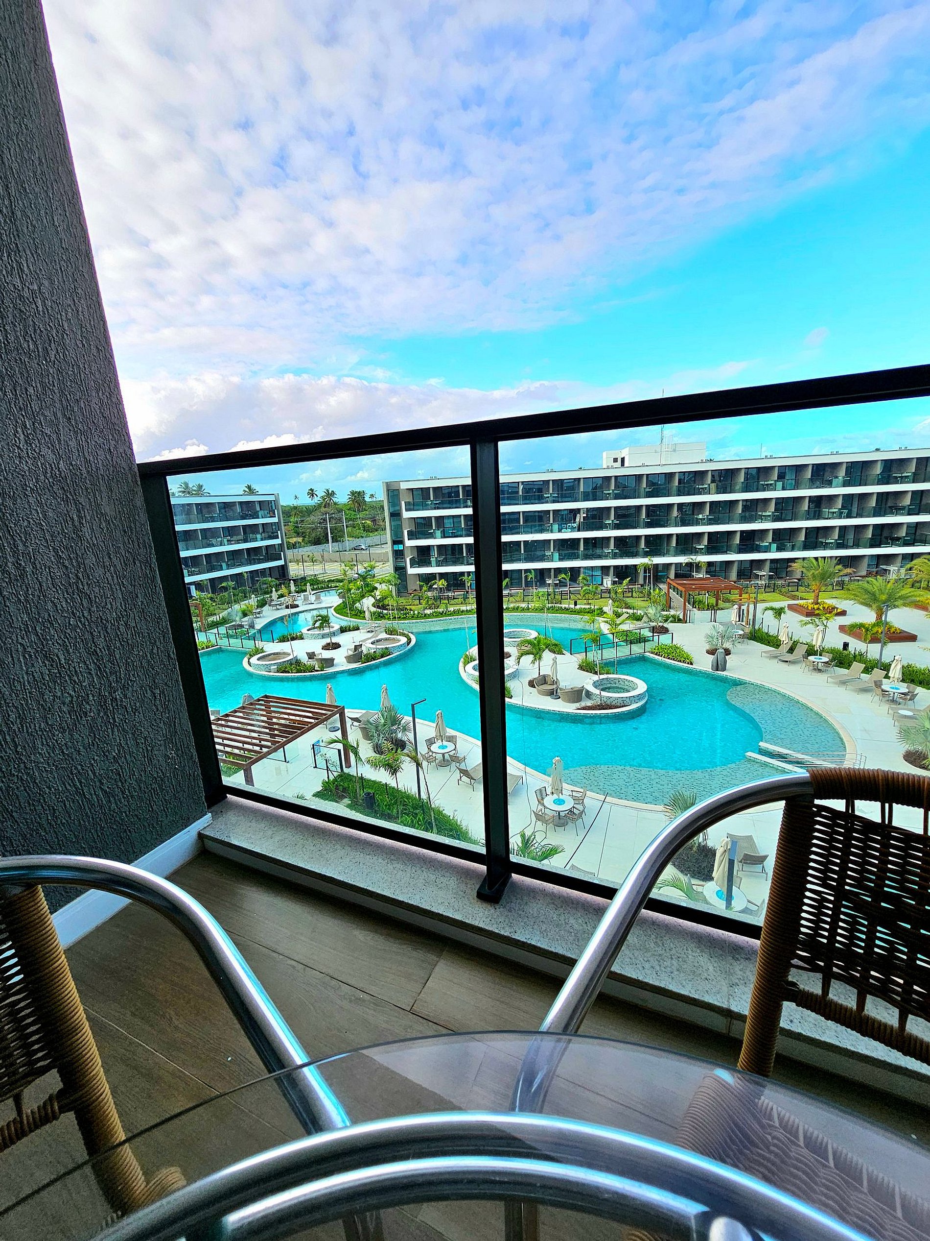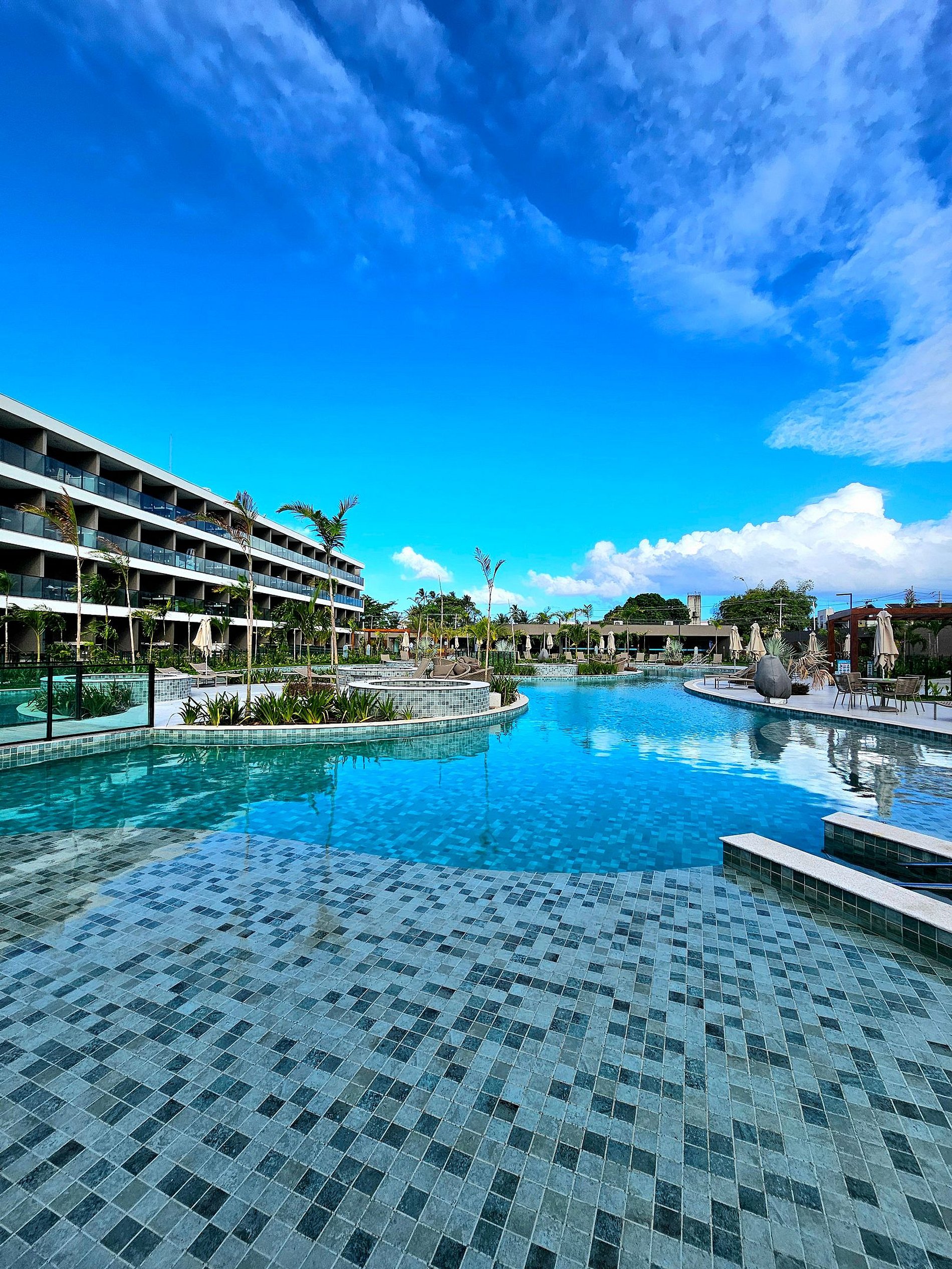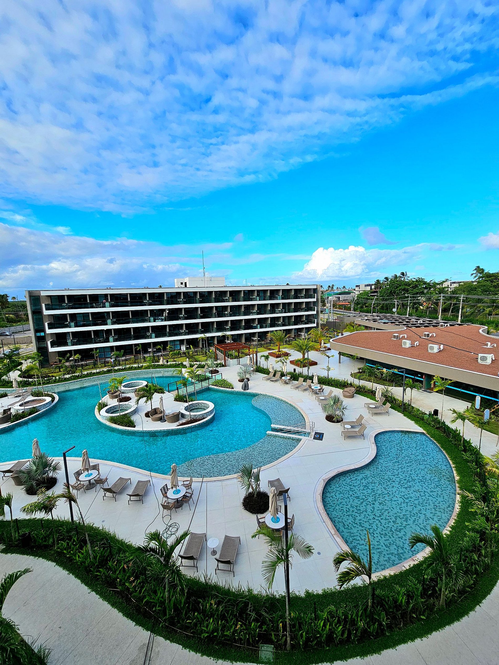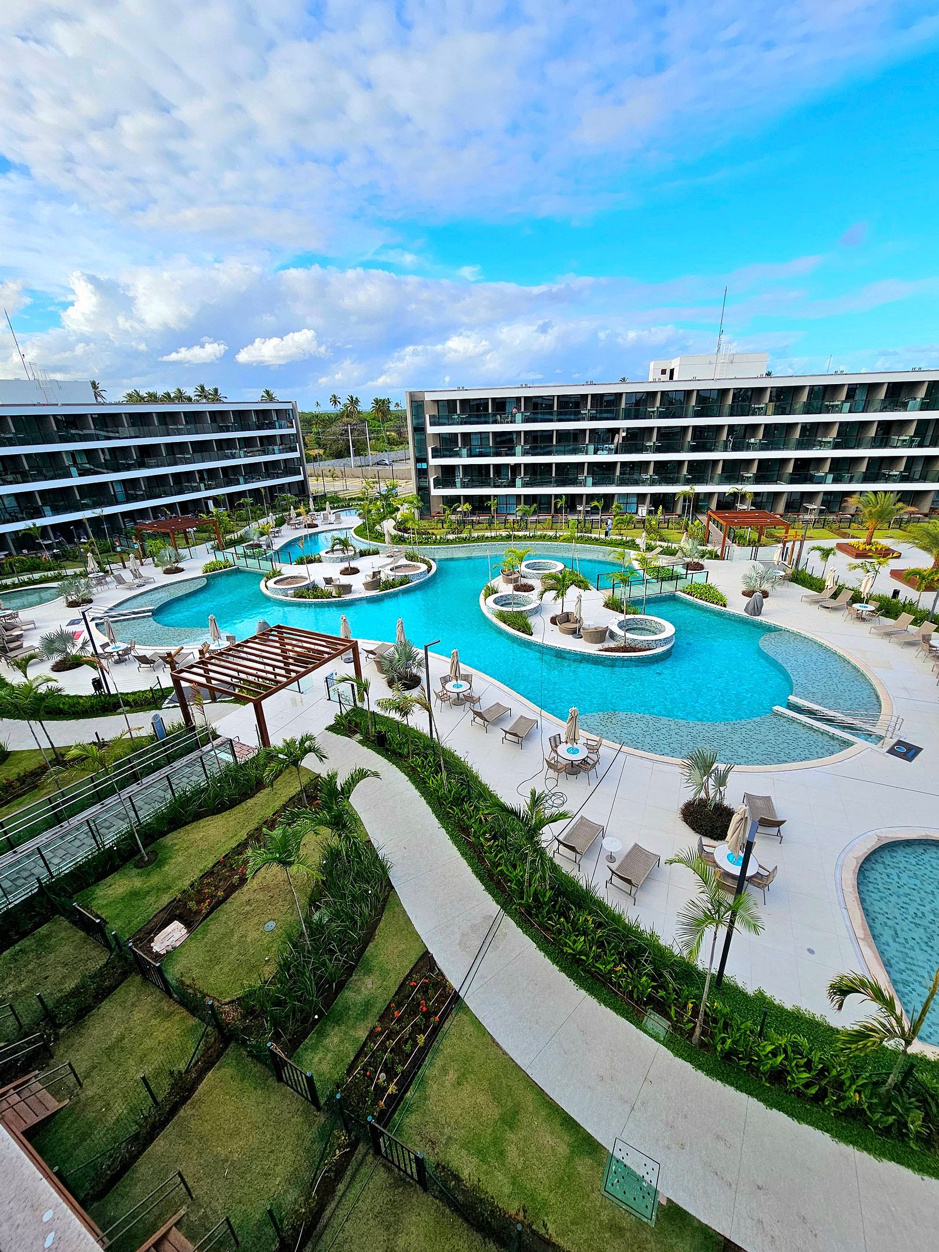 * Complexo aquático com diversas piscinas isoladas e hidros, com prainha (espreguiçadeiras e mesas)