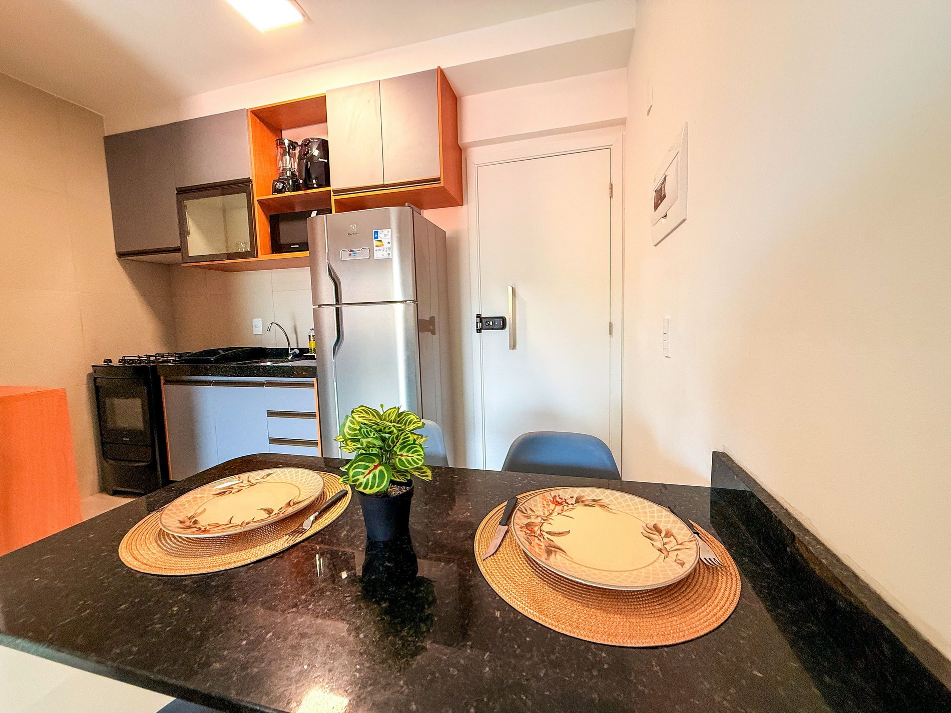 Oferecemos enxoval completo com roupas de cama e banho limpas, além de orientações personalizadas para que sua estadia seja a mais confortável possível. Você pode fazer o check-in com facilidade, a recepção é presencial 24h e o acesso ao flat por fechadura digital.