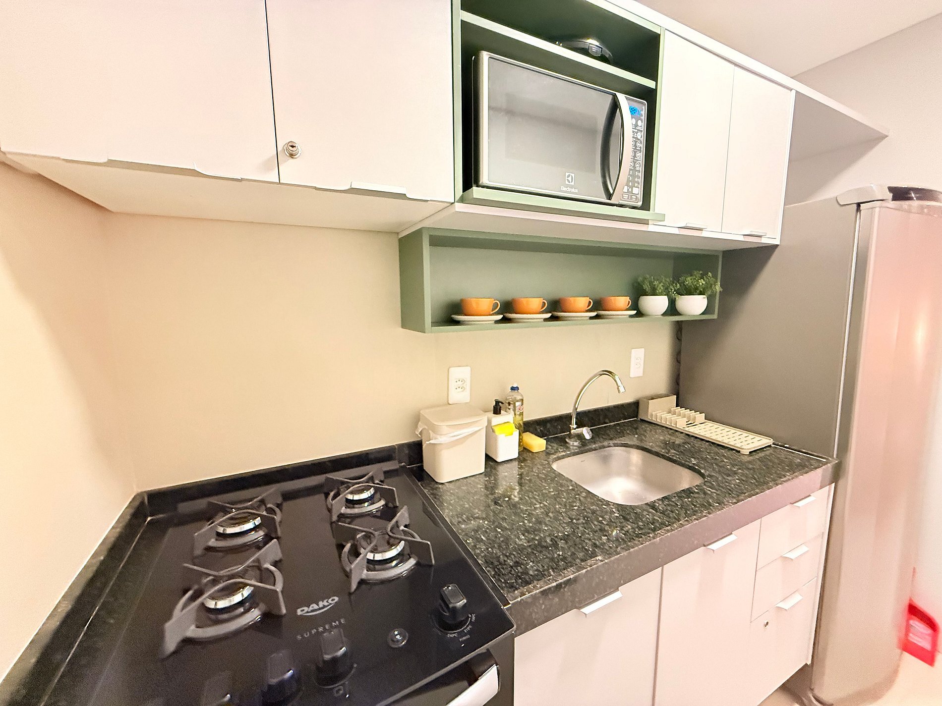 O apartamento é muito novo, confortável e totalmente equipado, completo com tudo que você precisa para uma estadia tranquila e prazerosa. Acomoda bem até 5 pessoas com uma cama de casal extremamente macia, cama auxiliar de solteiro e sofá cama muito confortável. O apartamento dispõe de uma varanda charmosa com vista para o mar, perfeita para relaxar. A cozinha é completa, equipada com cooktop, micro-ondas, geladeira, airfryer, sanduicheira, liquidificador, cafeteira, e todos os utensílios necessários para suas refeições.