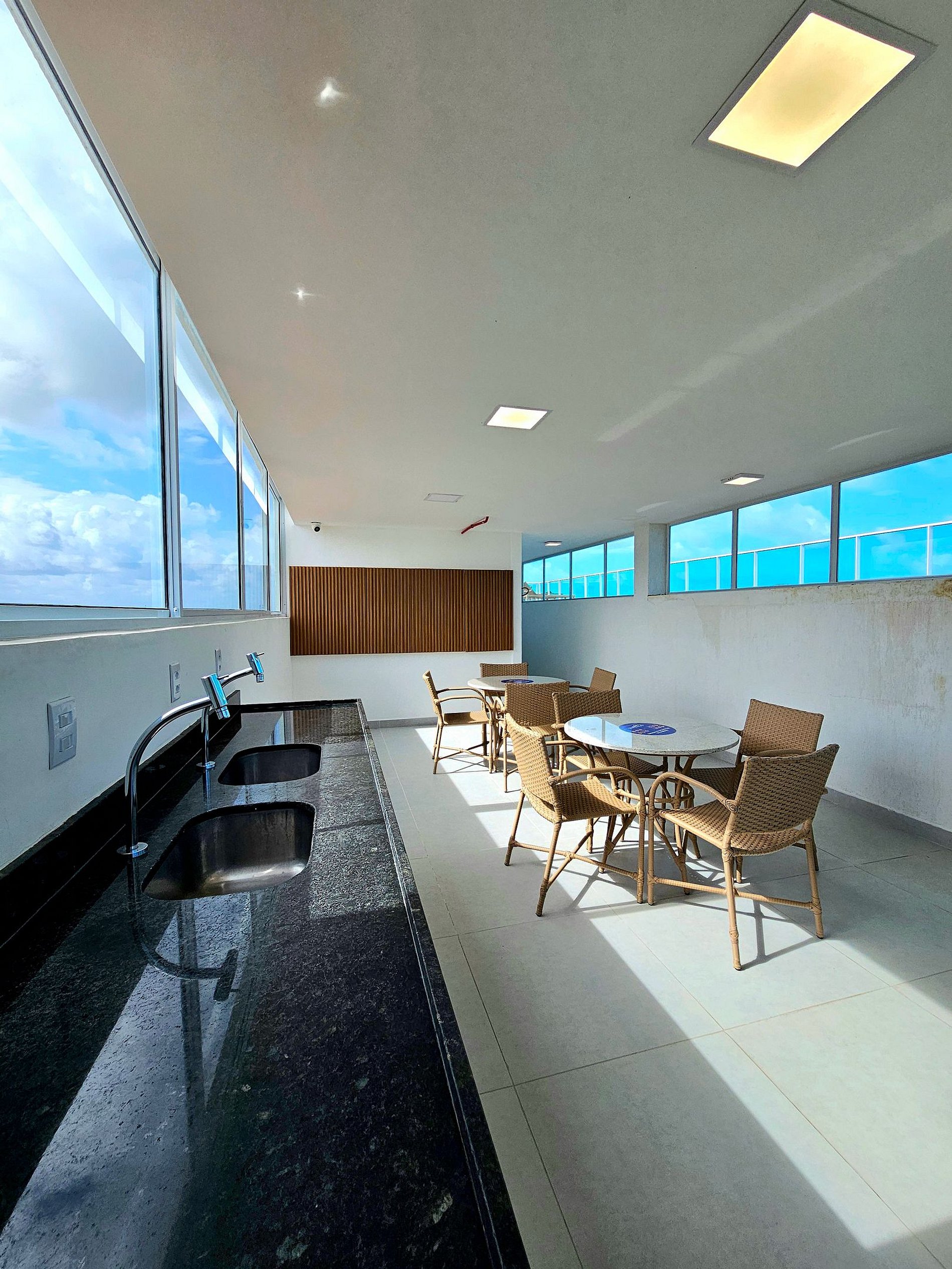 Luxo e Conveniência Desfrute de um espaço projetado para oferecer o máximo de conforto e elegância. O Edifício Ocean Blue conta com instalações modernas e uma decoração sofisticada que promete encantar cada visitante. Incrível piscina com vista panorâmica: Relaxe e renove as energias na nossa incrível piscina no rooftop. Com vista panorâmica para o mar e a cidade, é o lugar perfeito para aproveitar o sol tropical e desfrutar de momentos de puro lazer e descanso.