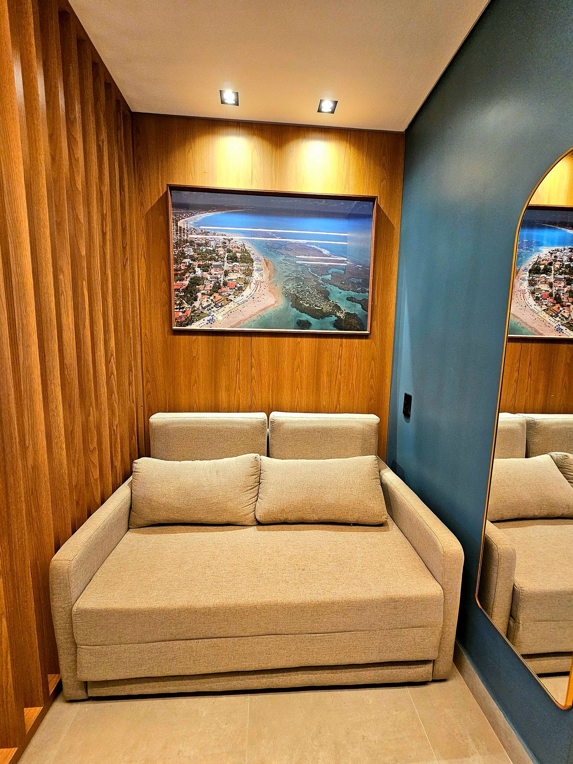 O Flat possui uma decoração sofisticada que proporciona um ambiente relaxante após um dia de passeios em Porto de Galinhas e Muro Alto.