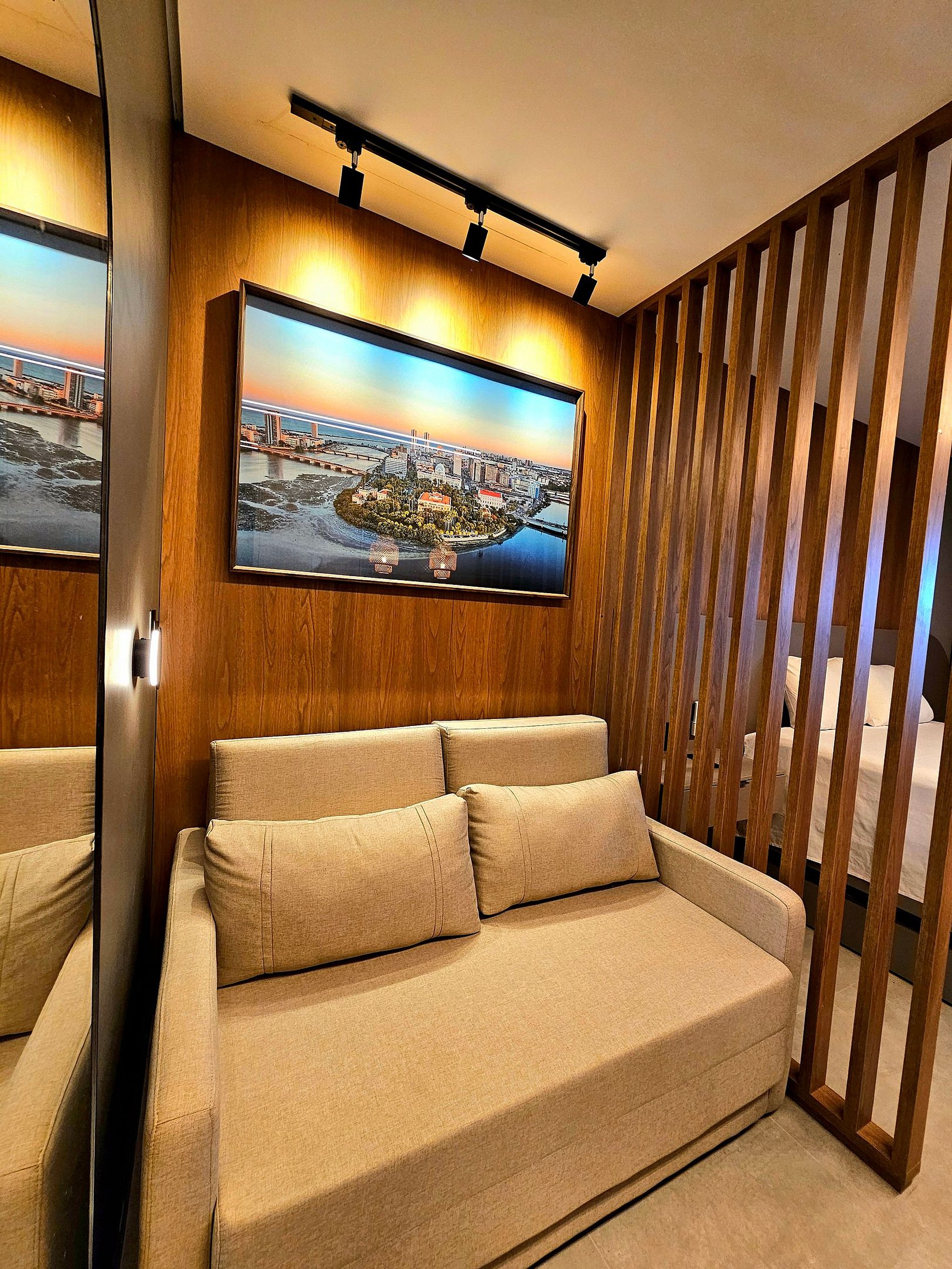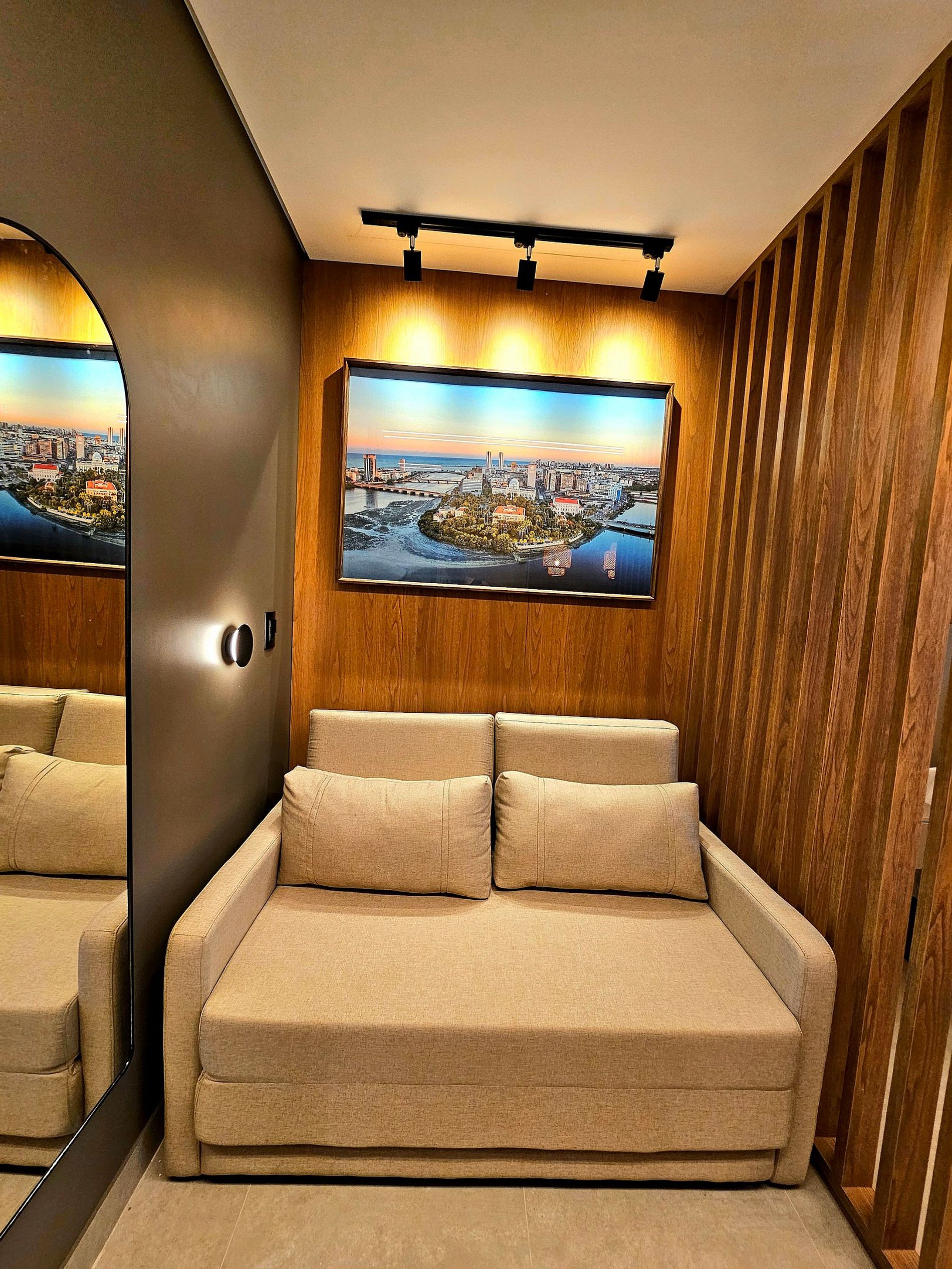 O Flat possui uma decoração sofisticada que proporciona um ambiente relaxante após um dia de passeios em Porto de Galinhas e Muro Alto.